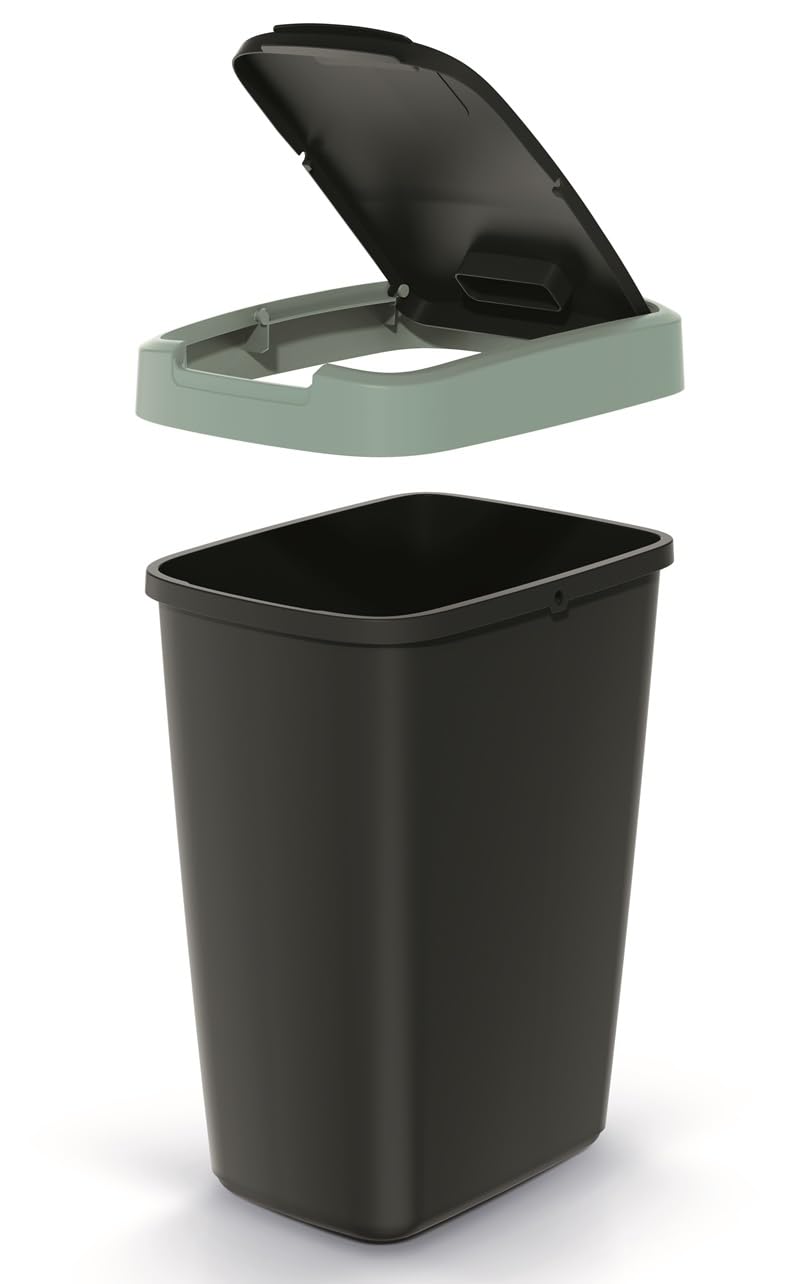 - aus hochwertigem Kunststoff, praktischer Schwing- und Klappdeckel, Breiter Deckelrand versteckt Müllbeutel,