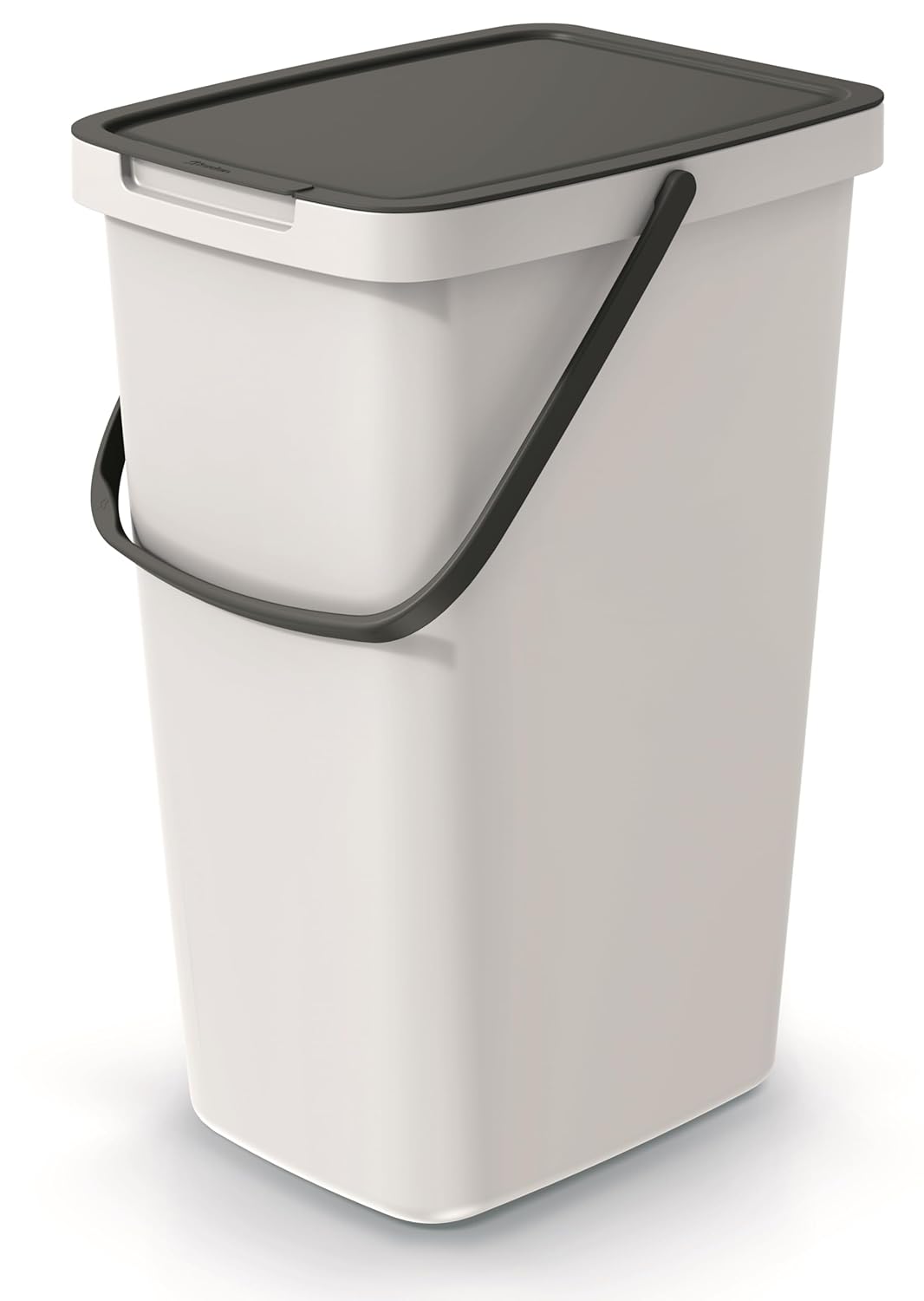 • aus hochwertigem Kunststoff, praktischer Klappdeckel und bequemer Tragegriff, Breiter Deckelrand versteckt Müllbeutel,