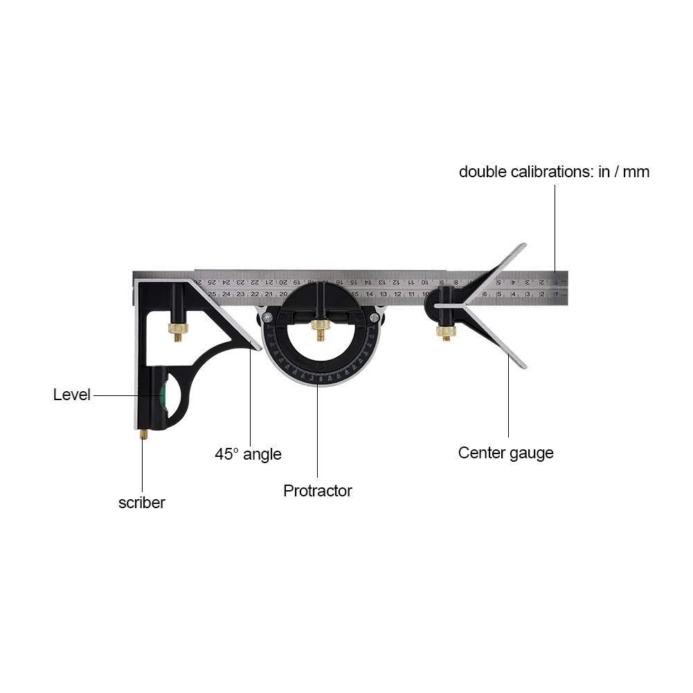 • 【Haltbares Material】 Die Winkel Lineale und vier Feststellknöpfe sind aus rostfreiem Stahl, was das Werkzeug haltbarer als Kunststoff macht