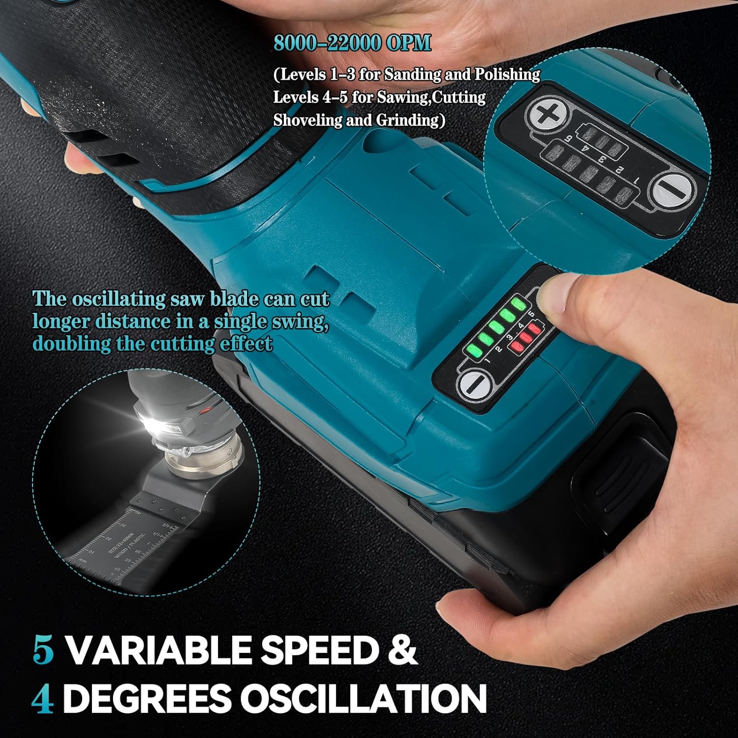 - Werkzeuglose Zubehörinstallation: Keine Schraubenschlüssel oder Inbusschlüssel mehr erforderlich! Schnellspannhebel ermöglichen einen schnellen Wechsel von Klingen und Schleifscheiben mit dem Oszillationswerkzeug und ermöglichen eine einfache,