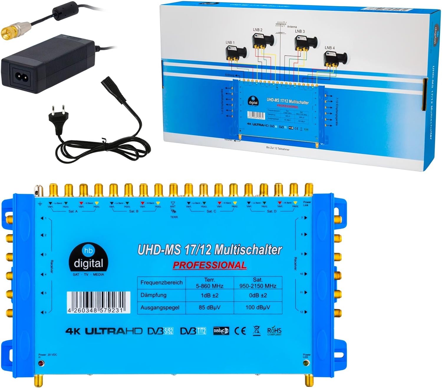 Multischalter pmse 17/12 HB-DIGITAL 4X SAT bis 12 x Teilnehmer/Receiver für Full HDTV 3D 4K UHD mit