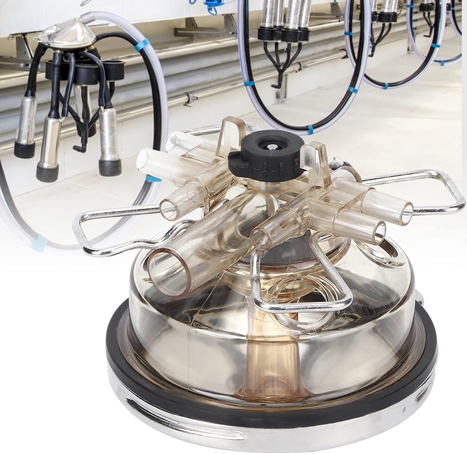 - Der Milchsammler ist ein Behälter mit mehreren Verteilern, in dem die Milchbecher in Abständen zu einer Milchbechergruppe installiert werden und der Milchbecher mit einem langen Schlauch und einem langen pulsierenden Schlauch verbunden wird.