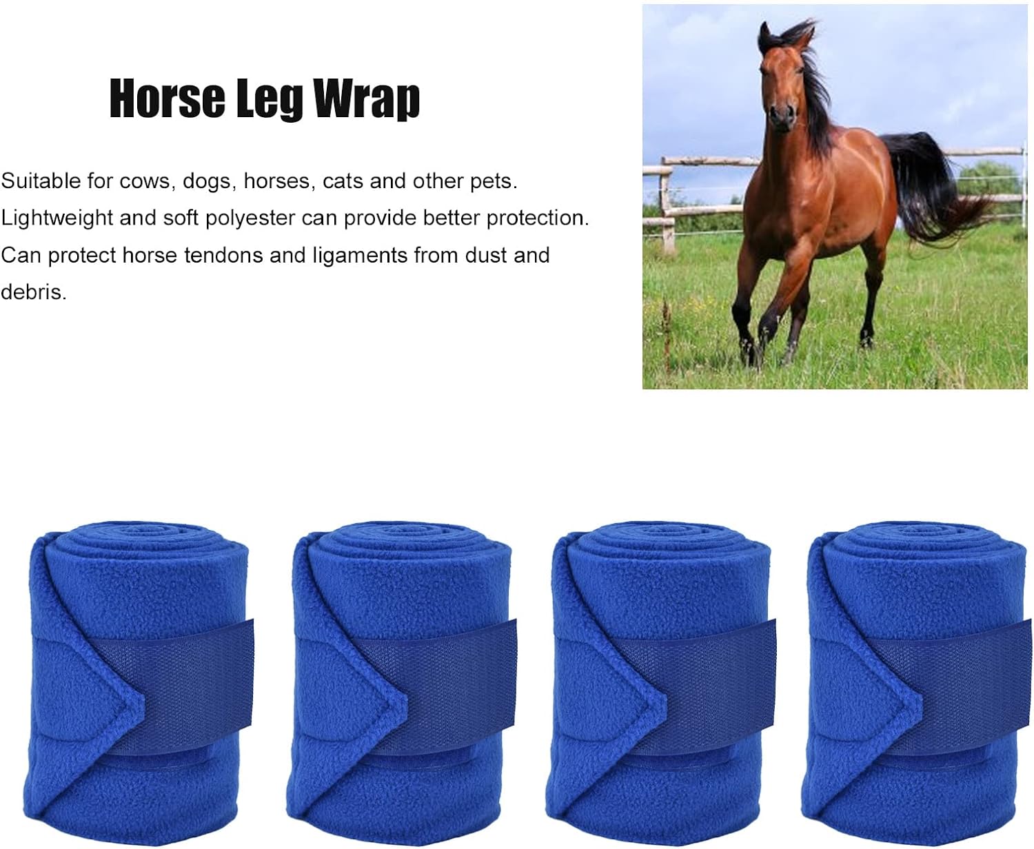 - Horse Leg Warp: Kann empfindliche Pferdesehnen und -bänder vor Staub und Schmutz schützen und dadurch Infektionen und Abrieb vermeiden.