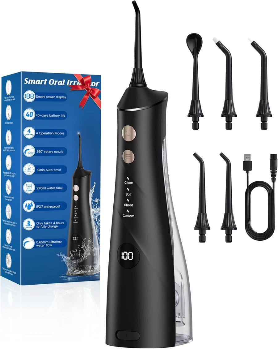 - 【Unterbrechungsfreie Nutzung & Aussergewöhnliche Akkulaufzeit】 Die Hsweeth Munddusche Kabellos ist mit einem grosszügigen 270-ml-Wassertank ausgestattet. Sie bietet einen kontinuierlichen Wasserfluss für eine gründliche Reinigung ohne