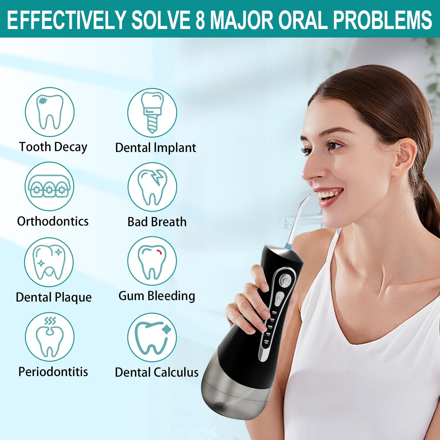 - BPA-frei und Extragrosser Wassertank: Verbesserter 320ml wassertank kein häufiges nachfüllen nötig. Diese Water Flosser verfügt über einen verbesserten 320ml wassertank, der doppelt so gross ist wie bei älteren modellen. Dadurch entfällt häufiges