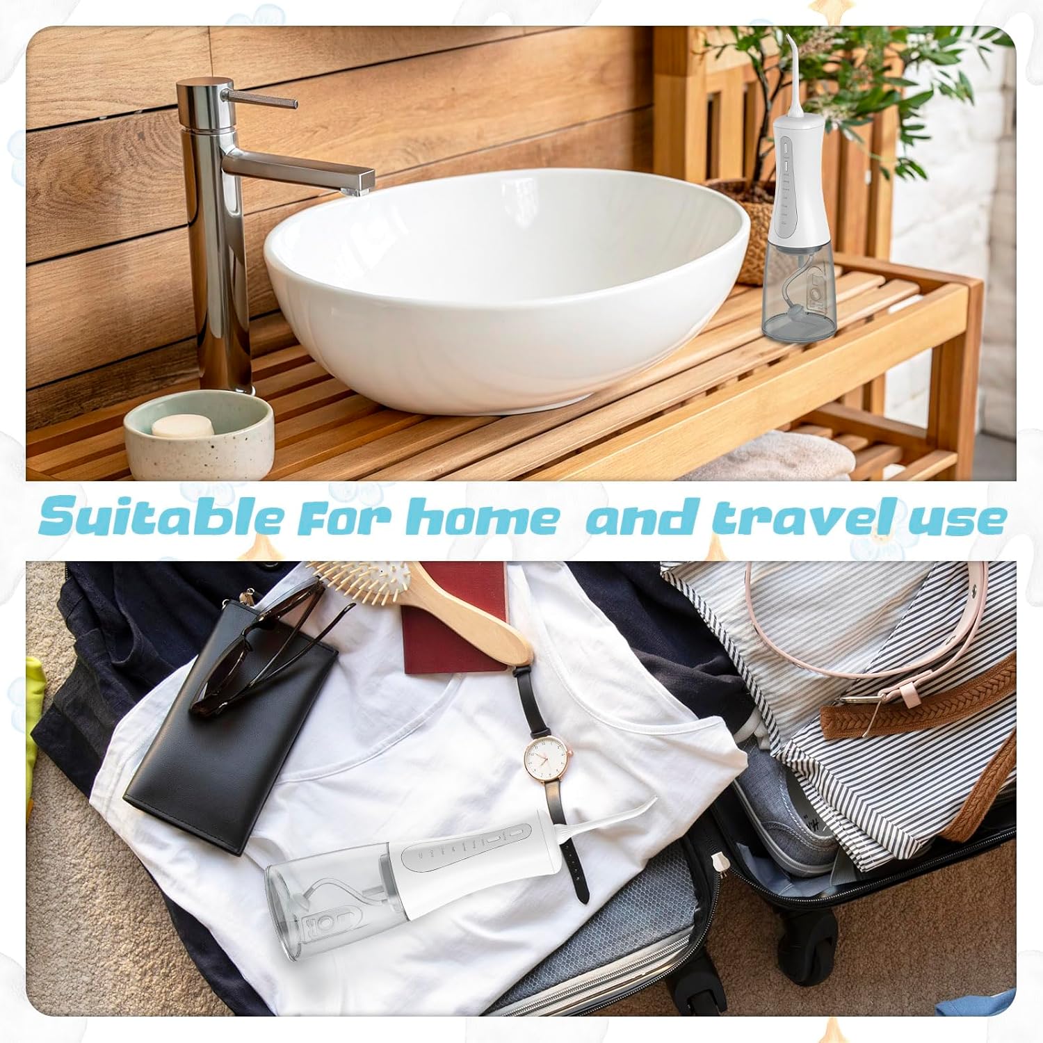 - Verlängerte Akkulaufzeit: Diese wiederaufladbare Munddusche verfügt über einen 1800-mAh-Akku mit hoher Kapazität, der eine Betriebsdauer von bis zu 60 Stunden ermöglicht. Dank ihres tragbaren Designs lässt sie sich mühelos mit auf Reisen nehmen,