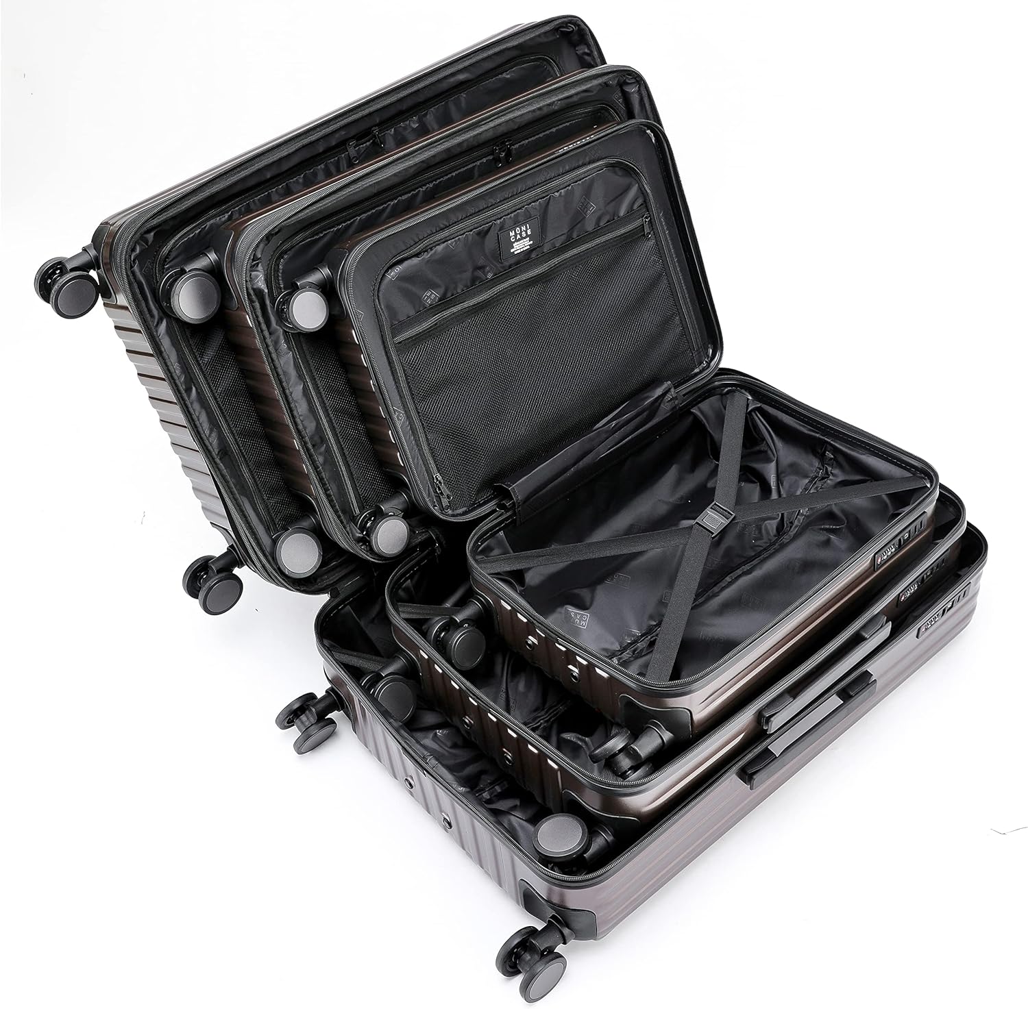 Münicase TSA-Schloss Koffer Reisekoffer Trolley Kofferset (Coffee, 3tlg. Kofferset)