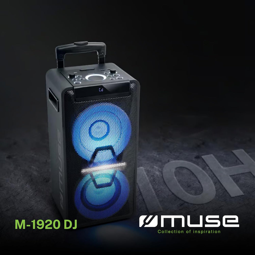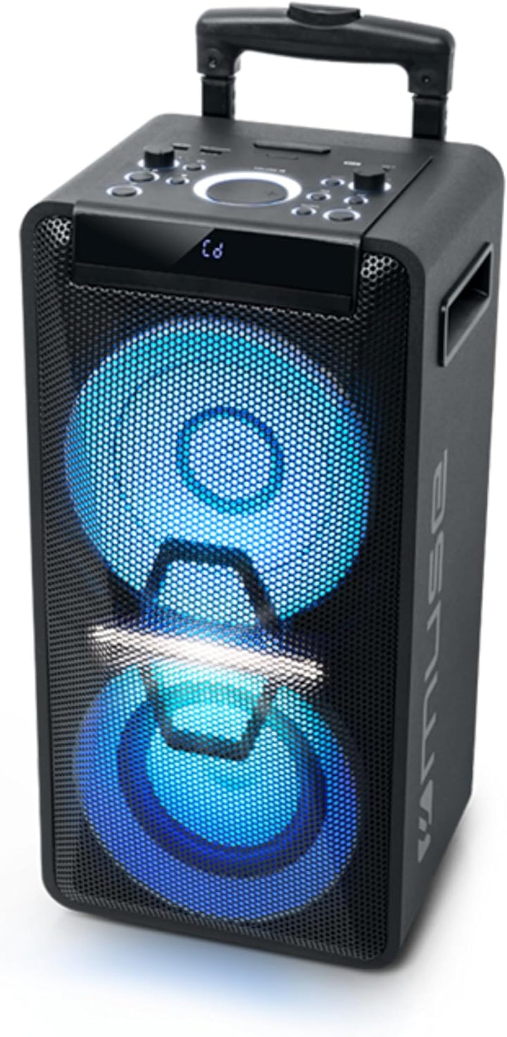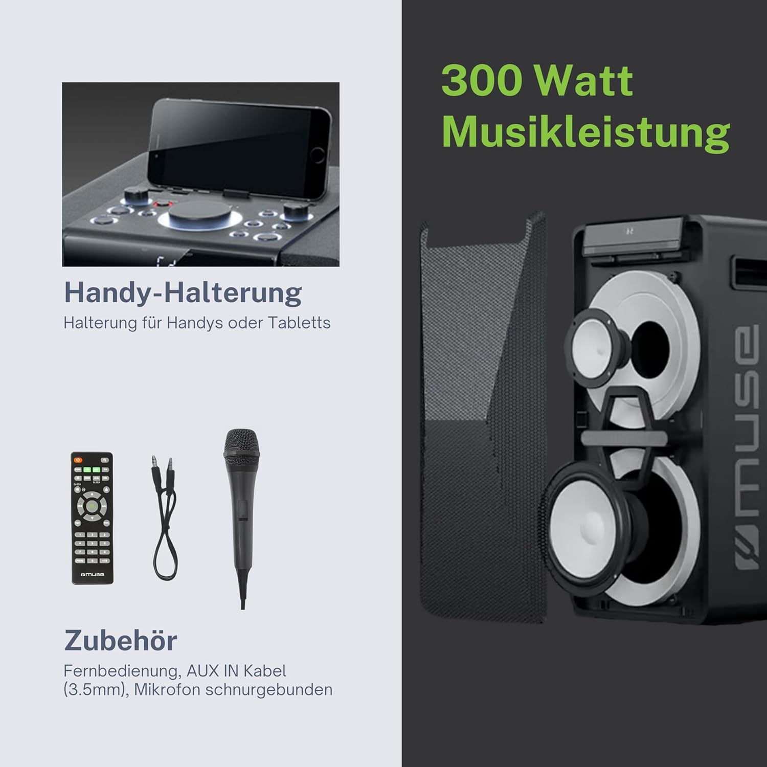 Muse DJ PA-Anlage mit Akku, 300 Watt, mit CD, Bluetooth und Licht-Effekten (USB, AUX, Mikrofon, Fern