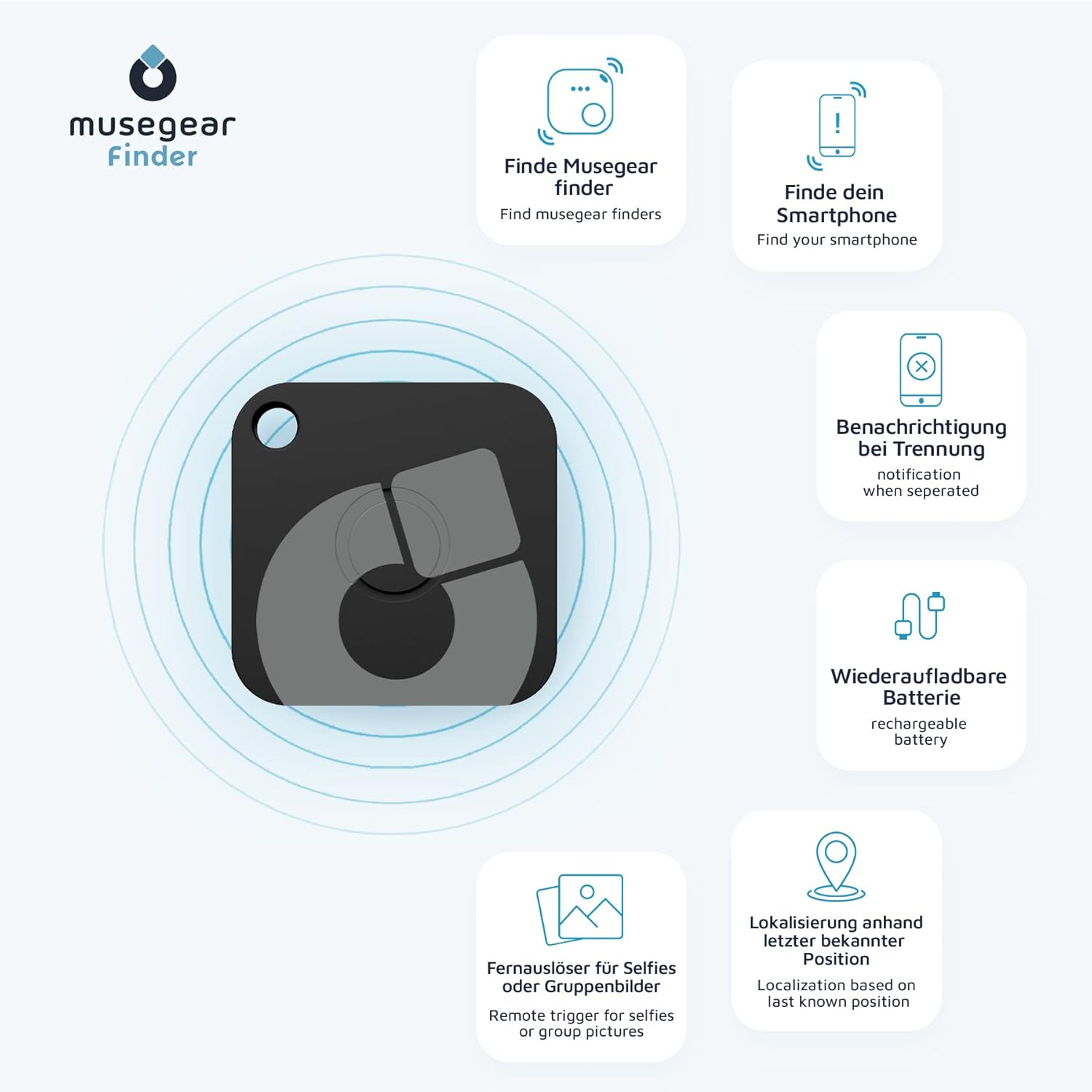 - ✅ Zusätzliche Features: Aufzeichnung des letzten Standorts (über die Bluetooth-Verbindung des Handys) und Navigation per Karte, Nutzung per Sprachassistent (Siri), Fernauslöser. Das perfekte Geschenk für alle, die gern alles verlieren: egal ob