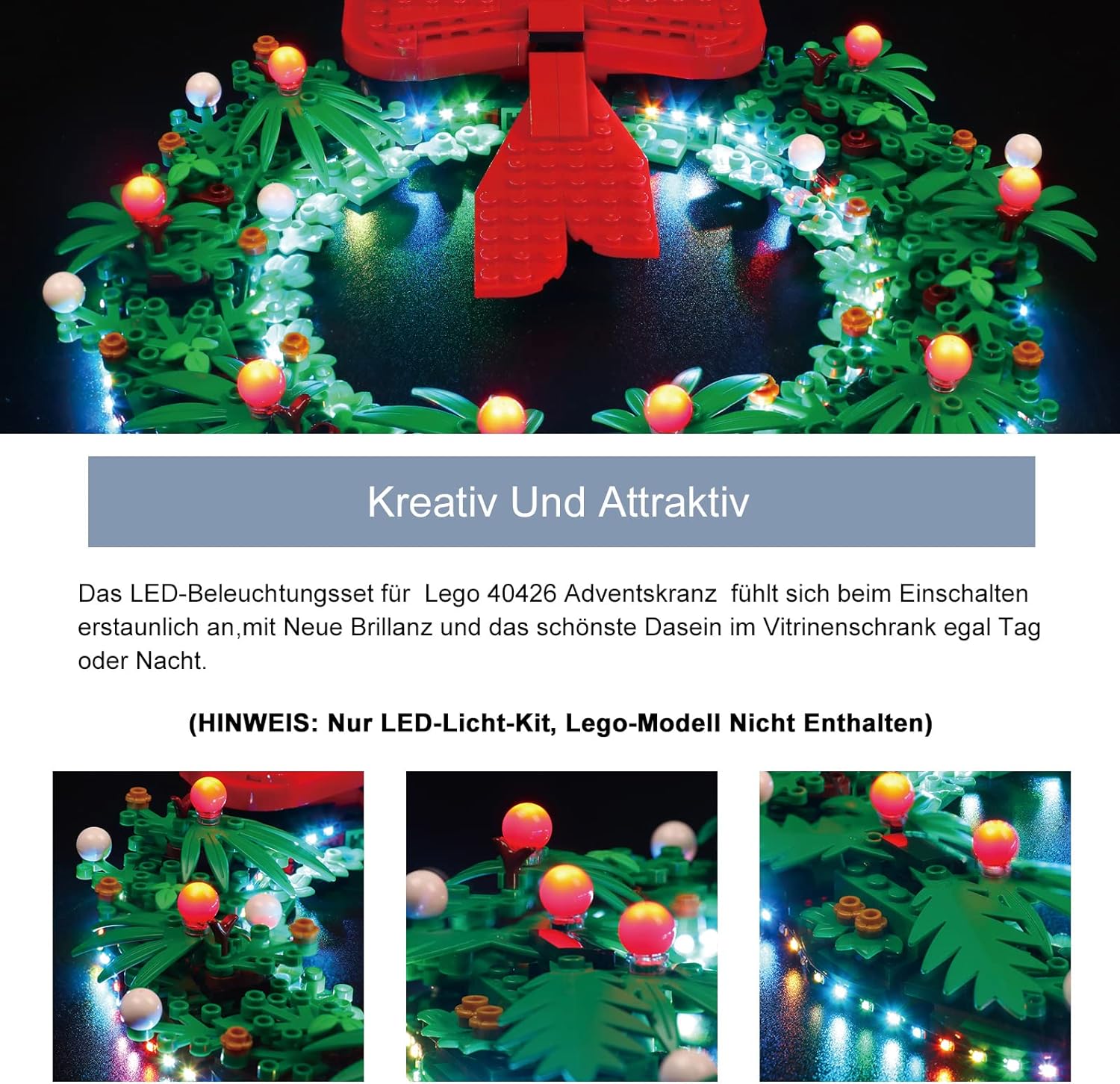 - 【Einzigartiges Design】 Entworfen für LEGO Adventskranz, mit unserem Beleuchtungsset wird Ihr 40426-Bausteinmodell zum Leben erweckt (Bitte beachten Sie, dass nur LED-Lichtset vorhanden ist, Sie müssen zuerst das LEGO-Set vorbereiten).