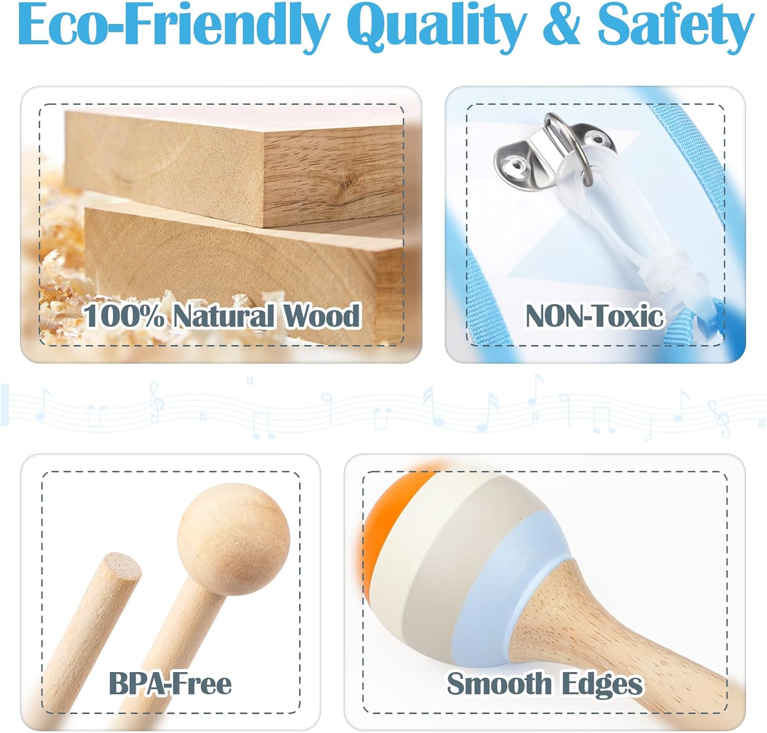 - Holzspielzeug Ab 2 Jahr:Das Musikinstrumenten-Set ist aus hochwertigen Materialien gefertigt, mit glatten, abgerundeten Kanten. Von langlebigen Trommeln bis hin zu robusten Schlaginstrumenten ist jedes Stück so konzipiert, dass es begeistertem Spiel