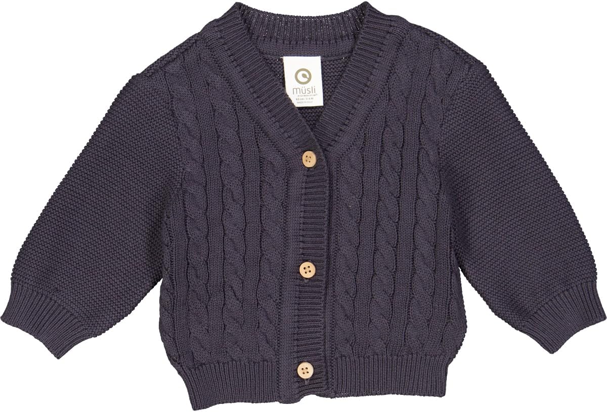 Müsli by Green Cotton Baby-Jungen Knit Cable Cardigan Sweater 86 Mystery Blue, 86 Mystery Blue