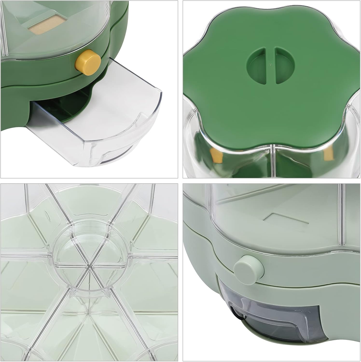 - 🍚 6-in-1 Design: Dieser Getreidebehälter verfügt über sechs separate Behälter für sechs verschiedene Getreidesorten, um die Lagerbedürfnisse Ihrer Familie zu erfüllen.Der um 360° drehbare Getreidebehälter verfügt über individuelle Tasten