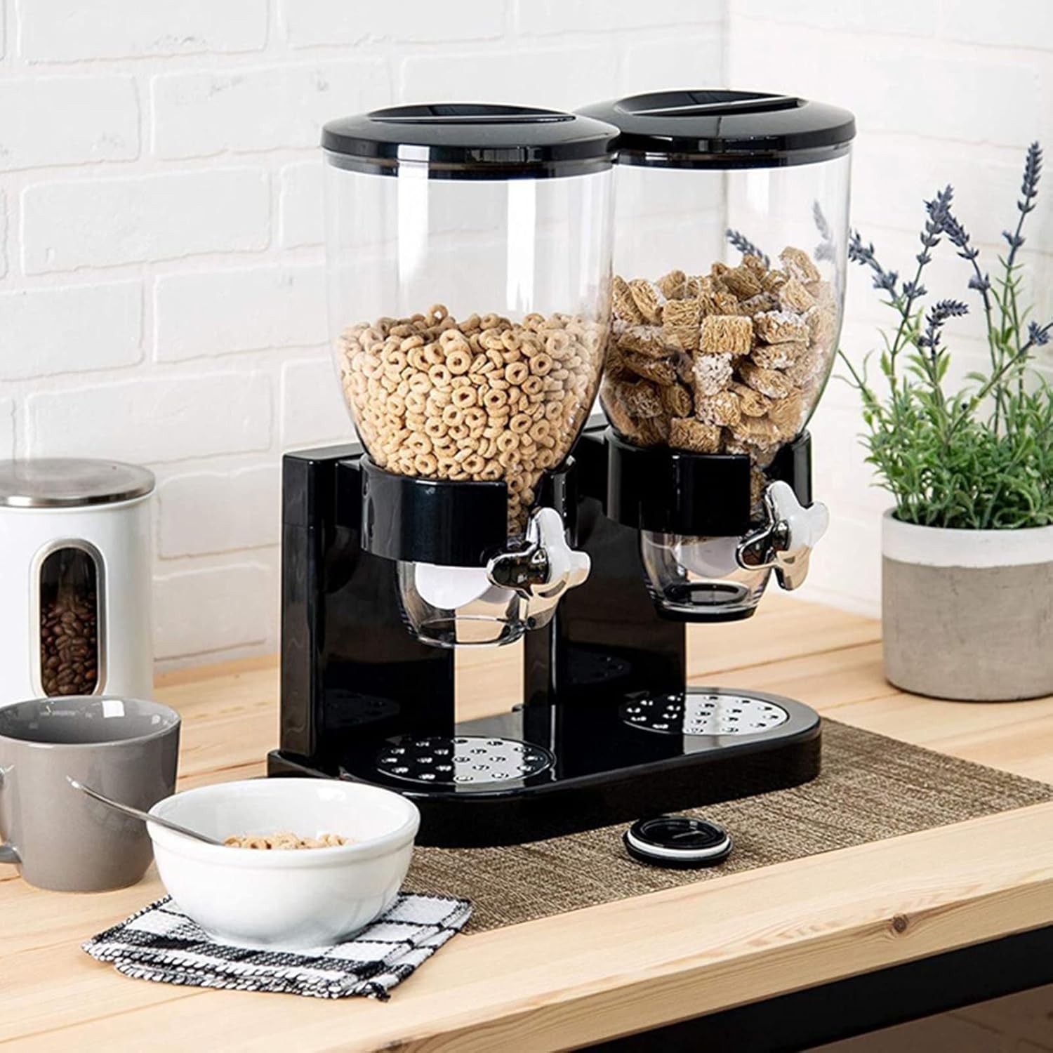 - Einfache Bedienung: Der Getreidespender ist für den einfachen Zugriff auf Getreide, Snacks oder andere trockene Produkte konzipiert. Ausserdem können Sie Getreide einfach durch den oberen Eingang lagern, indem Sie den Deckel entfernen