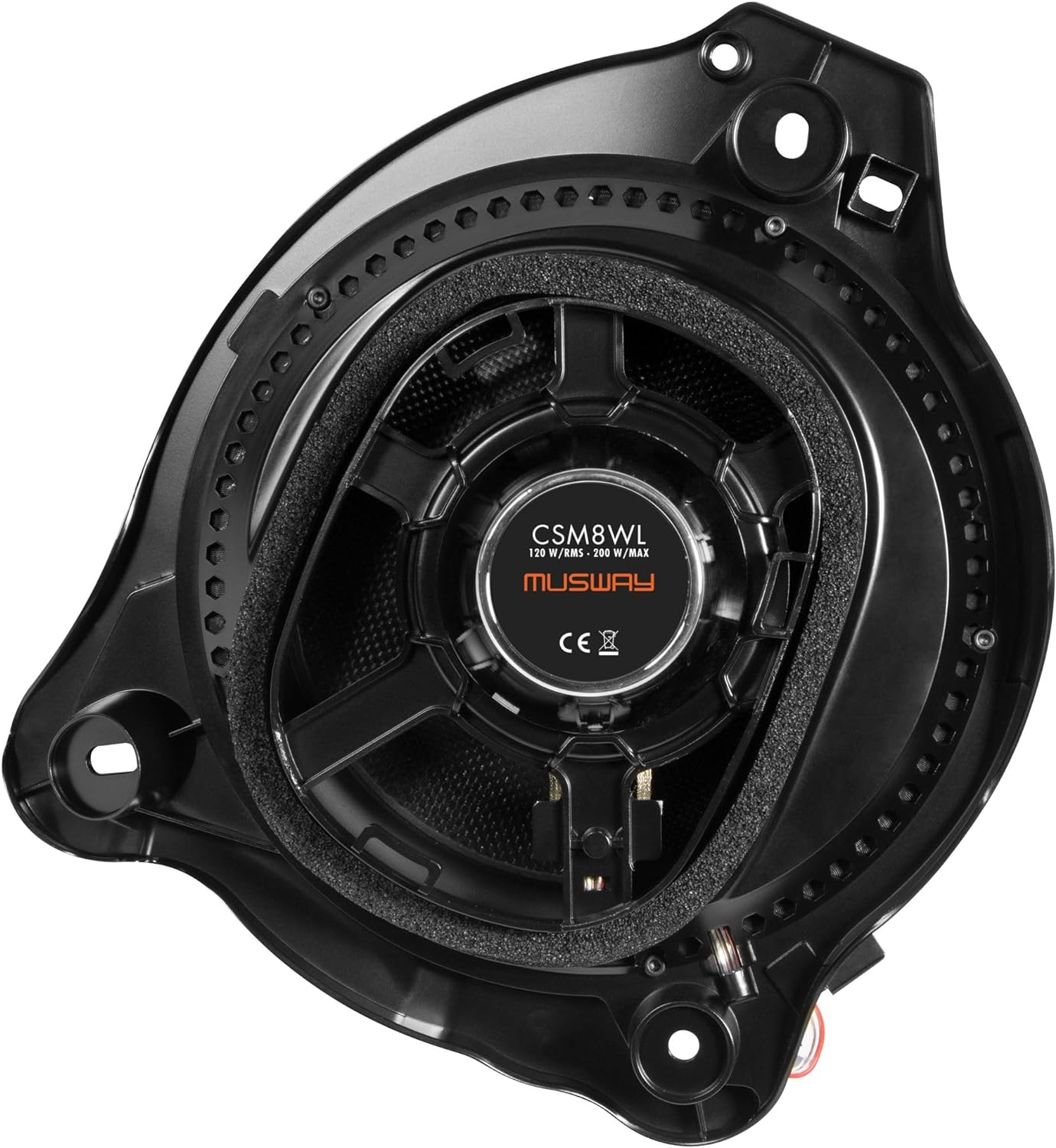 - 20 cm 20 CM (8) Subwoofer für Fussraum links; Belastbarkeit: 120 W RMS / 200 W max.; Impedanz: 2 Ohm; Frequenzbereich 30 - 300 Hz; Dual Neodym Magnet; 38 mm (1,5) Schwingspule; Glasfaser-Membran, Nomex Zentrierspinne; Plug+Play Anschlüsse