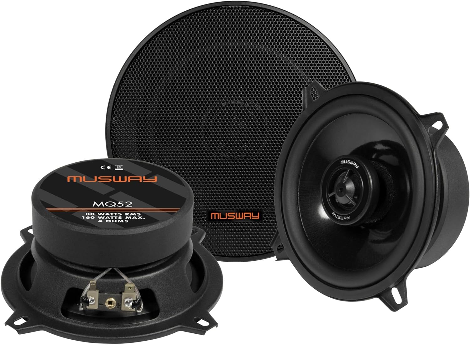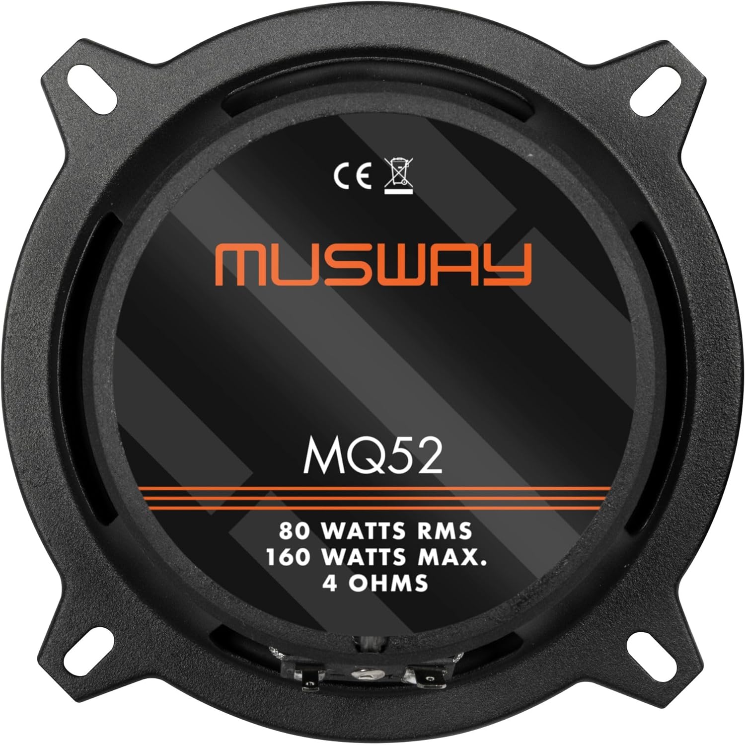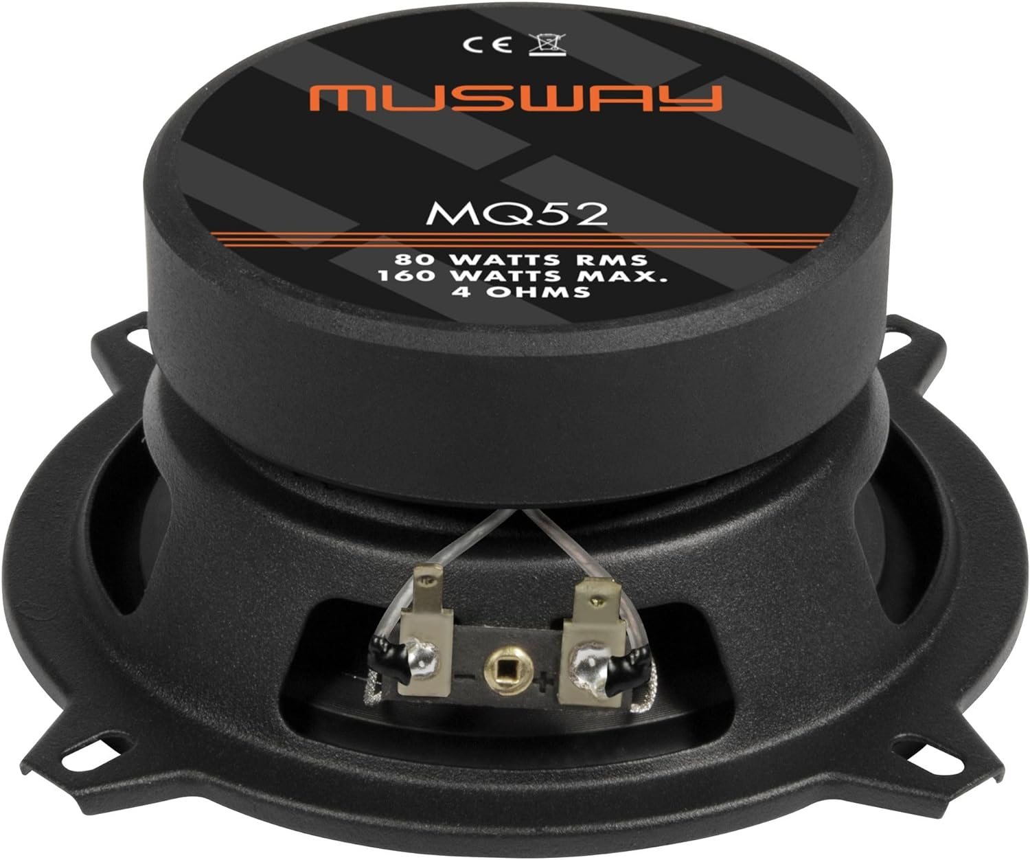 - 13 cm 2-Wege Koaxial-Lautsprecher; Belastbarkeit: 80 Watt RMS, 160 Watt max.; Impedanz: 4 Ohm; Frequenzgang 62 Hz - 22 kHz; 25 mm Schwingspule; Polypropylen-Graphit-Membranen; 20 mm Gewebe-Neodym-Hochtöner; MUSWAY Schutzgitter; Einbautiefe: 54 mm;