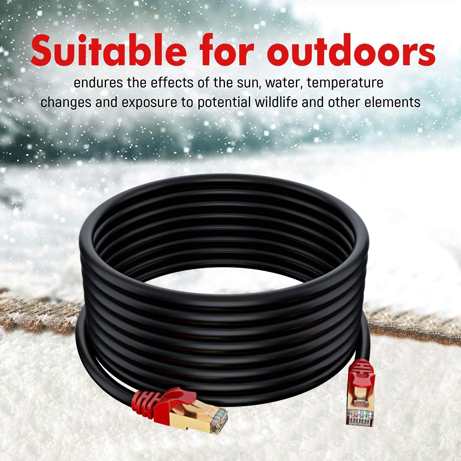- QUALITÄTSKONSTRUKTION: Hergestellt aus geschirmten, verdrillten Kupferdrähten mit vergoldeten RJ45-Steckern. Doppelte Aussenjacke für CMX Outdoor, widerstandsfähig gegen Korrosion und UV-beständig gegen direkte Sonneneinstrahlung. Stellen Sie eine