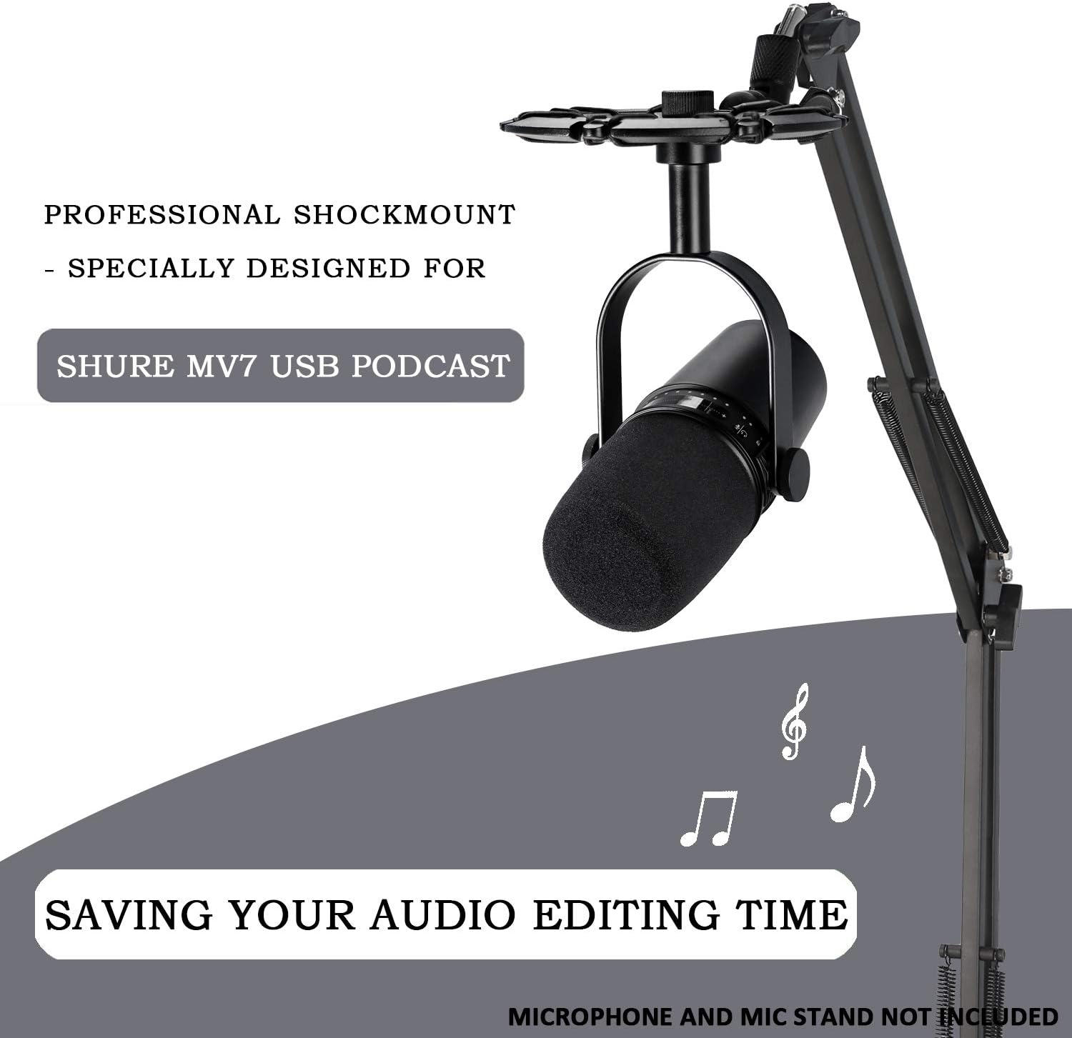 - Professionelle Mikrofonspinne - Speziell für das MV7 USB podcast mikrofon entwickelt, um vibrationen zu reduzieren. Sparen sie zeit bei der audio bearbeitung. (Gelenkarm Nicht im Lieferumfang Enthalten)