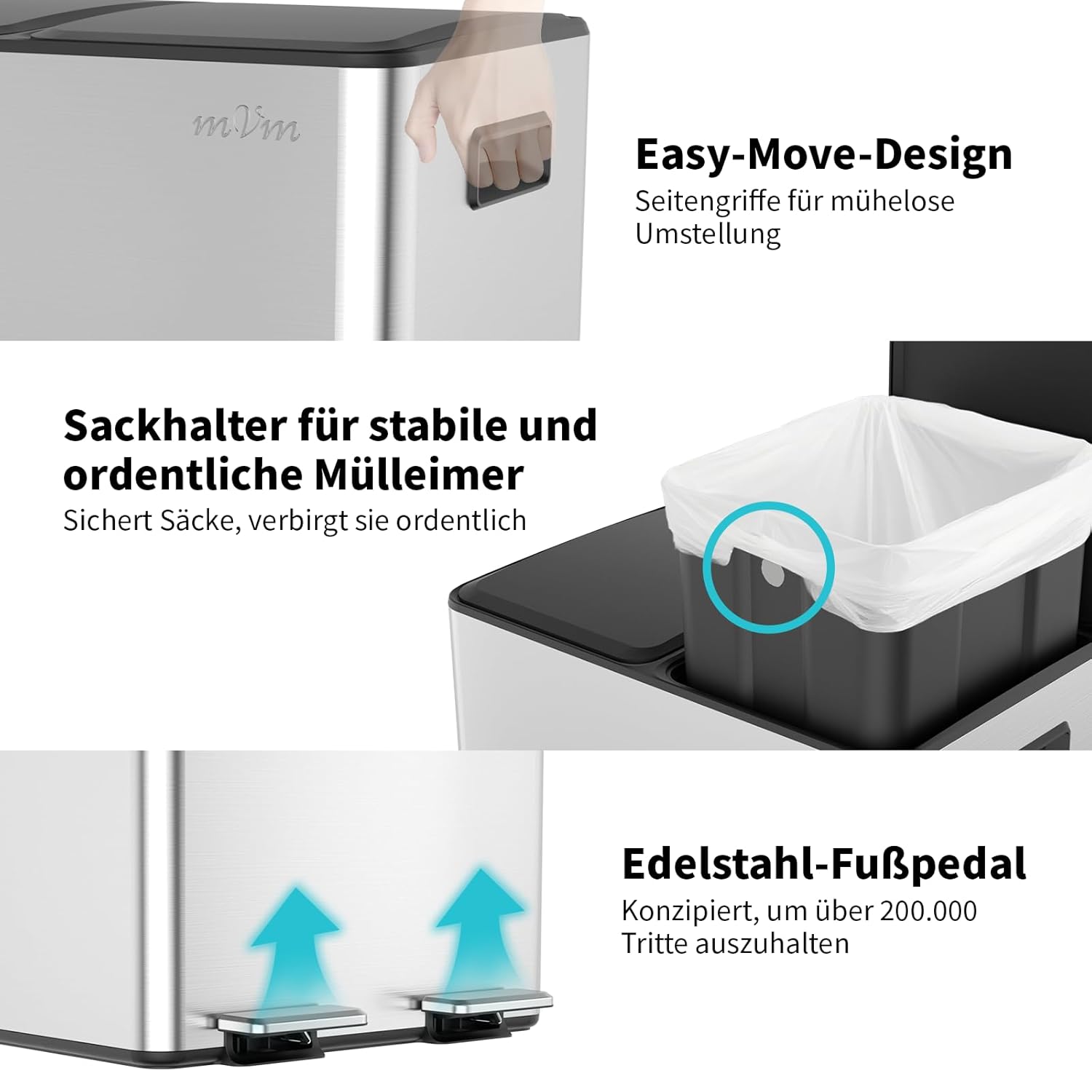 - 【2x20 Liter Doppelfach】2 Fächer, trockener und nasser Müll können getrennt gelagert werden, einfach zu realisierende Müllklassifizierung. Jedes Fach ist 20 l gross, insgesamt 40 l, damit Sie die Fächer einzeln öffnen und schliessen und Abfälle