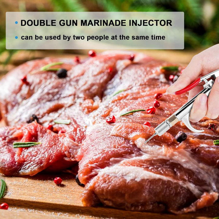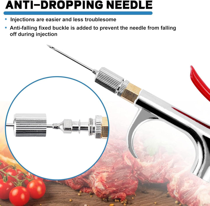 - [Köstlich geniessen] Mit dieser Fleischspritze können Sie leicht verschiedene Marinaden/Salzwasser in dickes/dünnes Fleisch geben. Die Marinade ist gleichmässig, so dass das Fleisch innen und aussen köstlich ist, und das gegrillte Fleisch ist noch