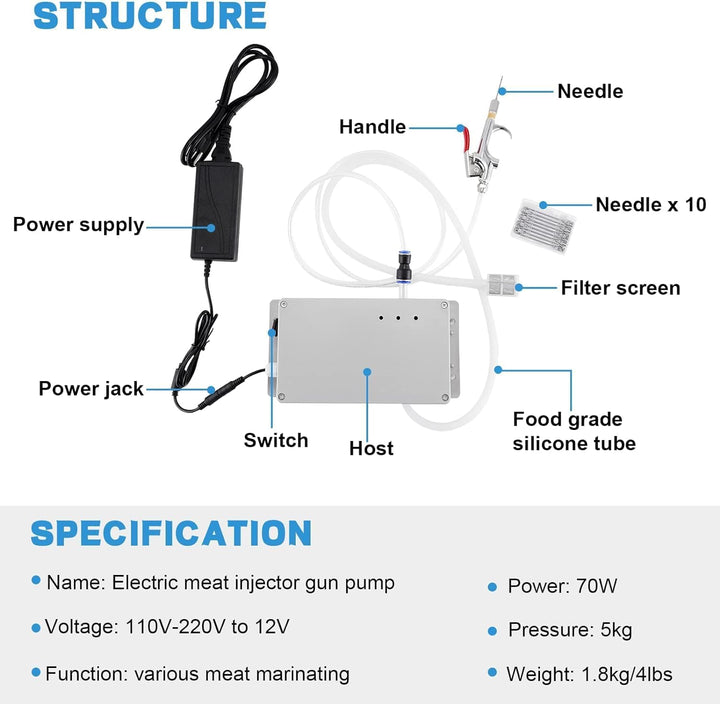 - [Schnell und nicht müde] Während Weihnachten / Thanksgiving / Ostern / Familientag, diese elektrische Injektionsspritze wird Ihnen helfen, Fleisch schnell zu marinieren, Ergonomisch gestalteter Griff ist bequem zu halten, mühelos, und wird nicht müde