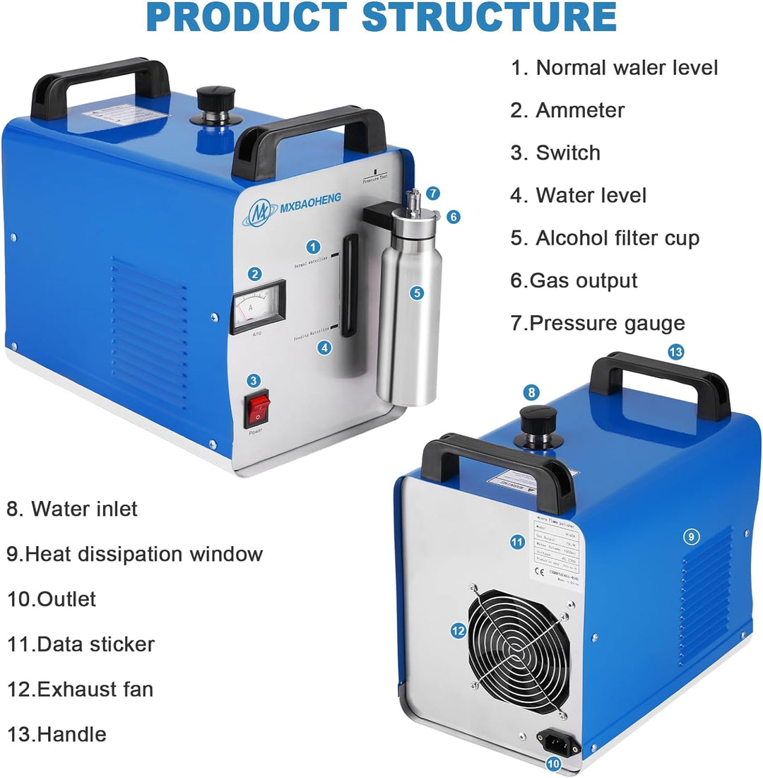 - 【Energieeinsparung und Umweltschutz】 Die Flammenpoliermaschine extrahiert Wasserstoff und Sauerstoff durch elektrolysiertes Wasser. Wasserstoff wird als Kraftstoff verwendet. Sauerstoff unterstützt die Verbrennung. Das Verbrennungsprodukt ist nur