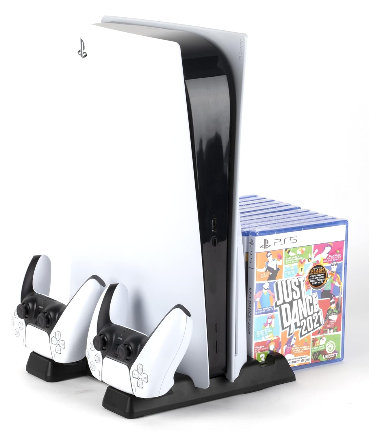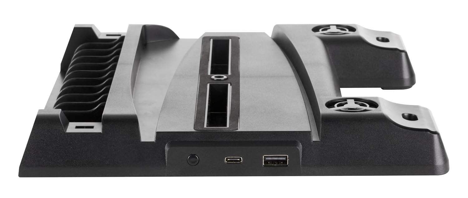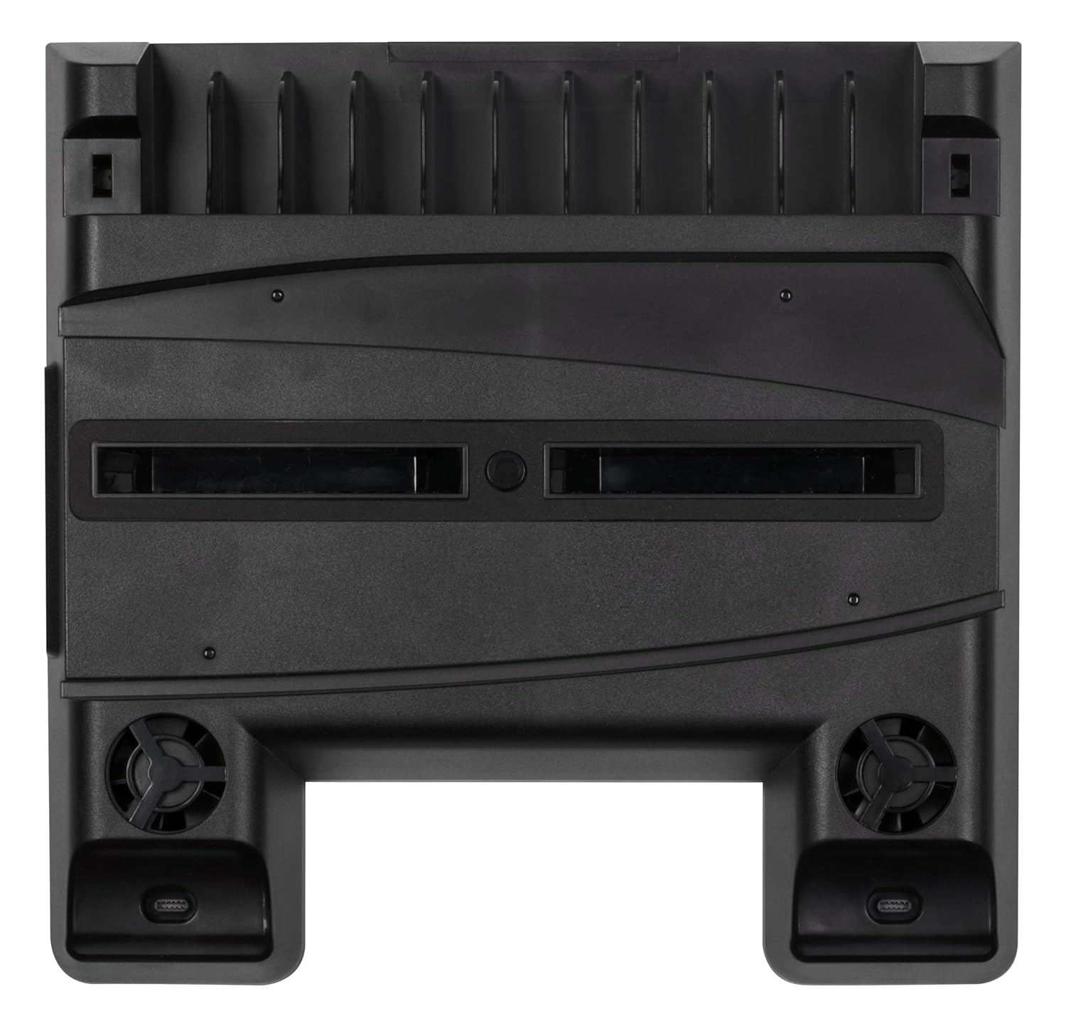 • MULTIFUNKTIONALE STATION: Diese Ladestation verfügt über eine Aufbewahrungseinheit, um Ihre gesamte Spieleausrüstung an einem Ort aufzubewahren, funktioniert aber auch als Ladegerät für Ihre kabellosen Controller mit einem Kühlventilator.