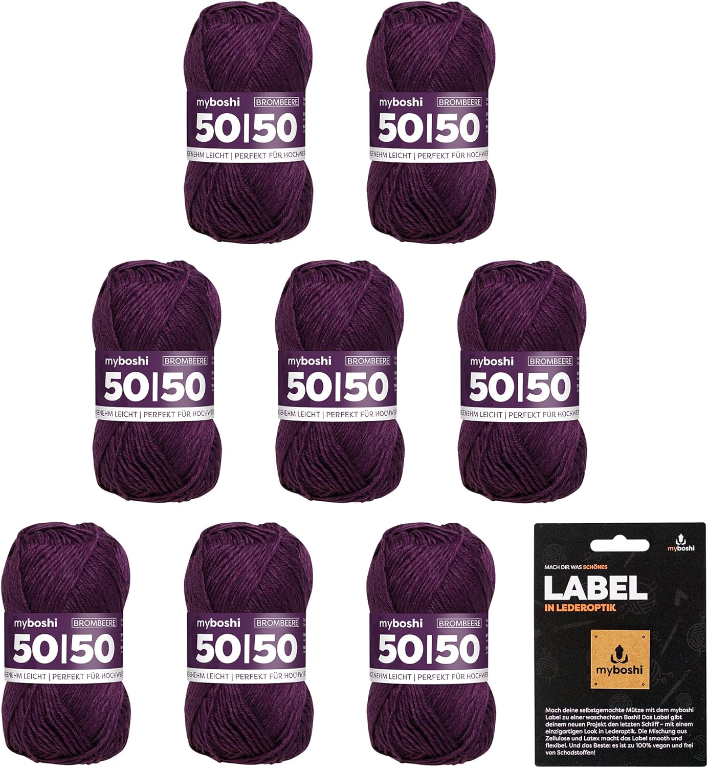 • Vorteilspack: In diesem Pack erhältst du mit deiner Wolle ein kostenfreies myboshi Label in Lederoptik dazu. Mischung aus Zellulose/Latex, Vegan und waschbar bis 60°.