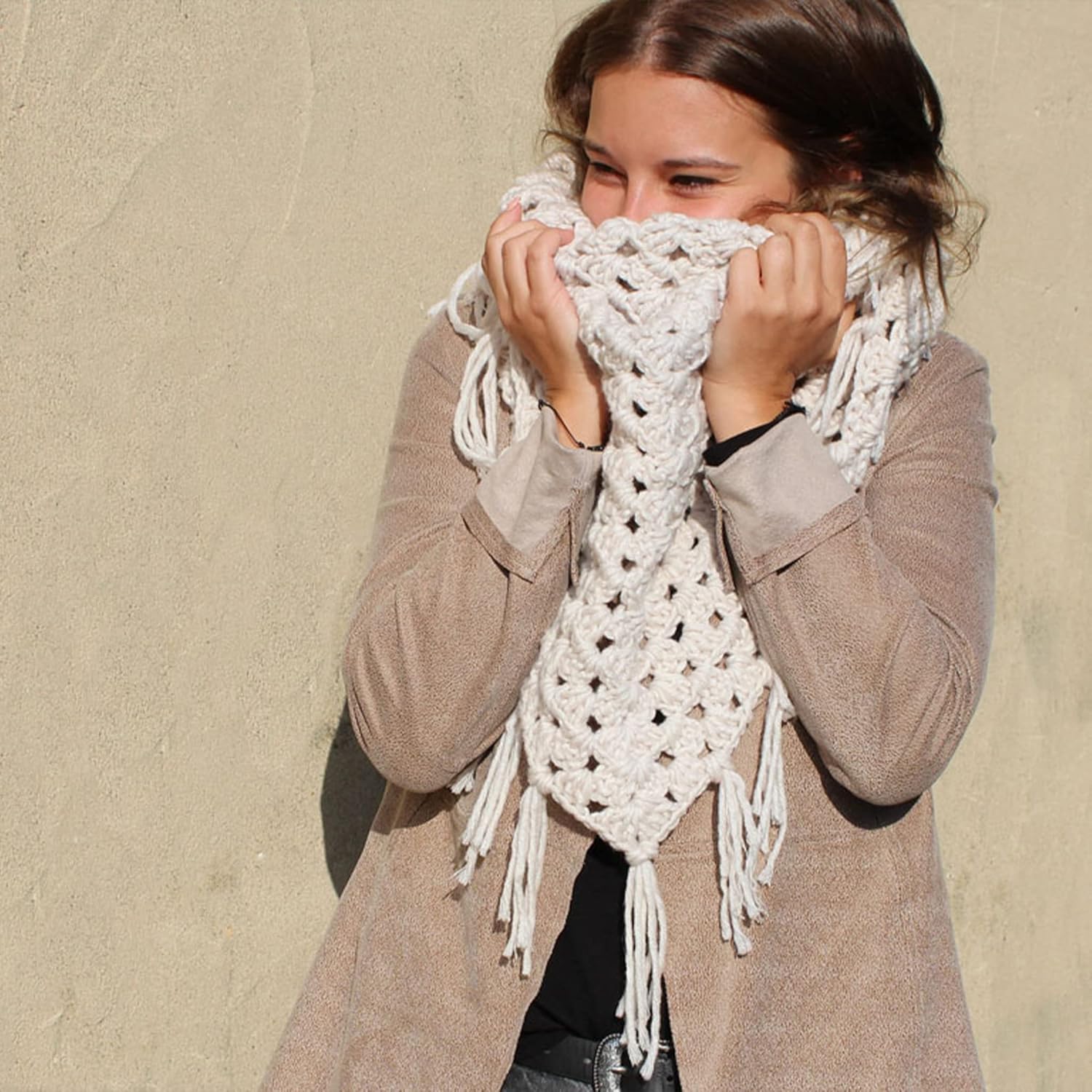 - Grösse: Die Dreieckstuch-Anleitung zeigt dir die Schritte für ein ca. 127cm breites und 65cm langes Tuch. Es wird aus einfachen Stäbchen gefertigt.