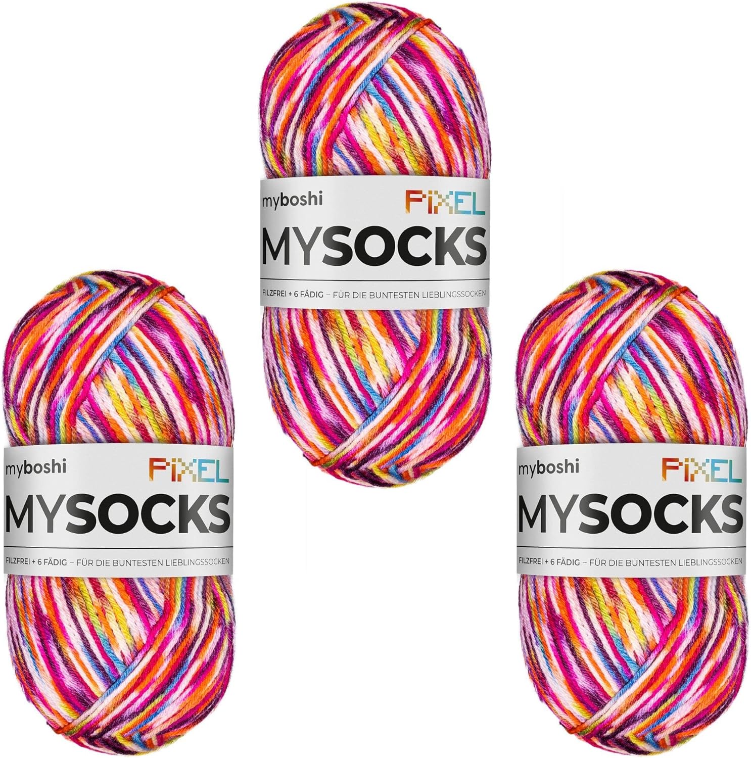 myboshi mysocks Pixel, 6-fädige Sockenwolle, strapazierfähig, Garn aus Schurwolle, filzfrei, 150g, L