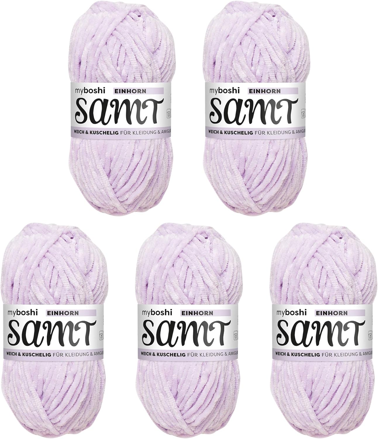 myboshi Samt, 100% Chenille-Garn, Flieder - Einhorn, 100g, 100m, 5 Knäuel, Wolle zum Häkeln und Stri