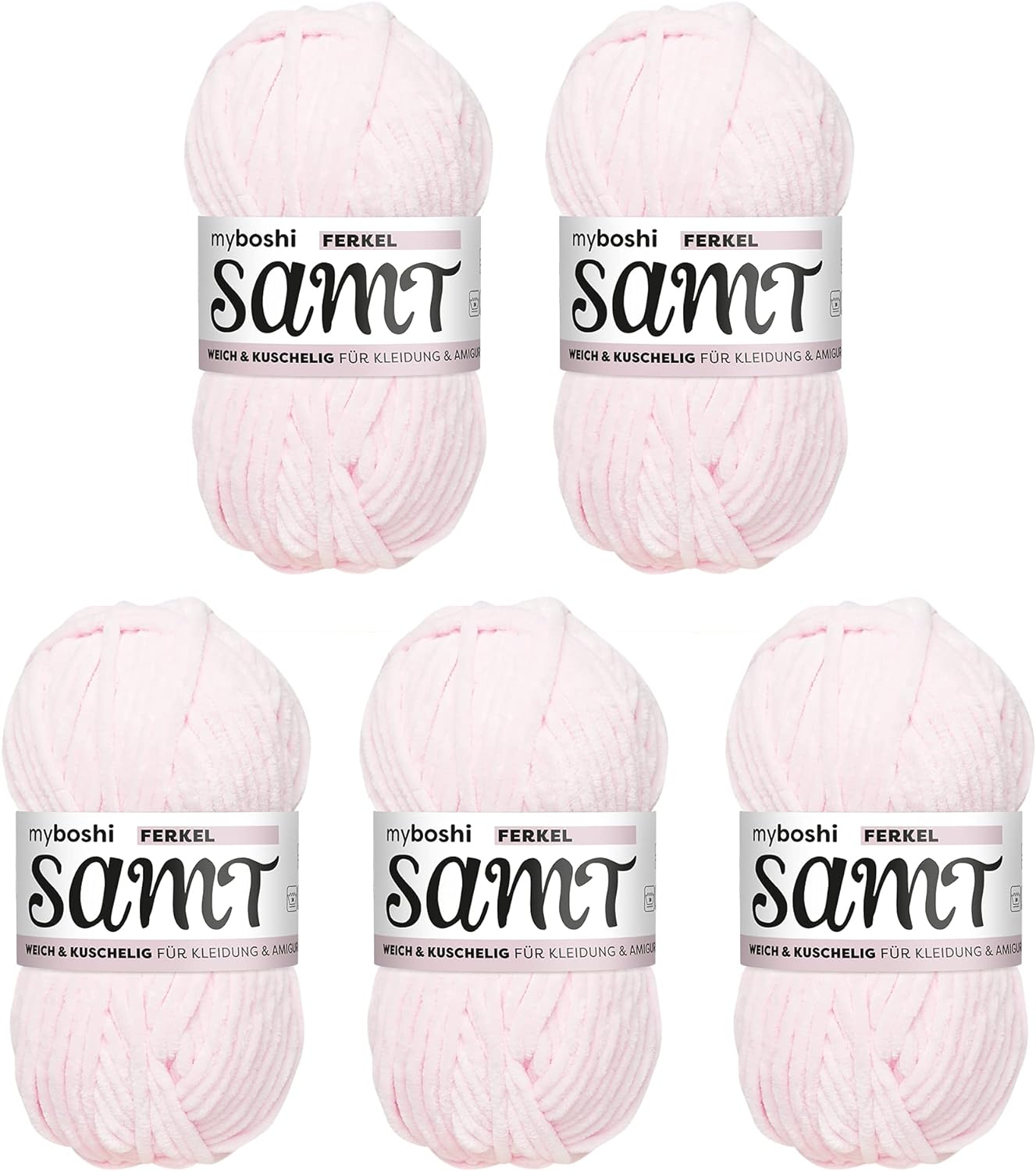 myboshi Samt, 100% Chenille-Garn, Rosa - Ferkel, 100g, 100m, 5 Knäuel, Wolle zum Häkeln und Stricken