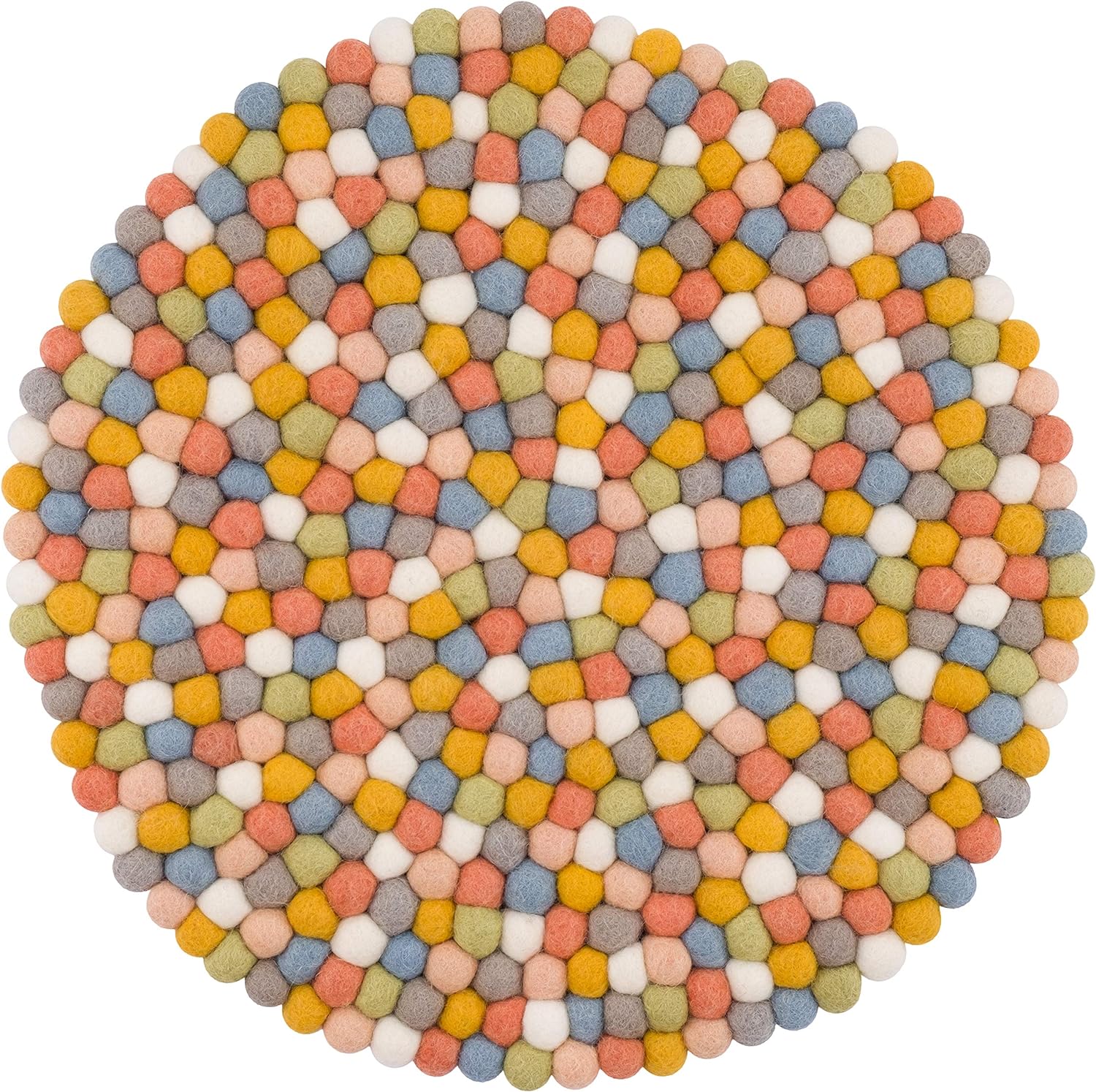 - Die runde Auflage, bestehend aus den typischen myfelt Filzkügelchen, setzt auch optische Akzente und sorgt für Gemütlichkeit sowie Wärme im Essbereich oder am Arbeitsplatz