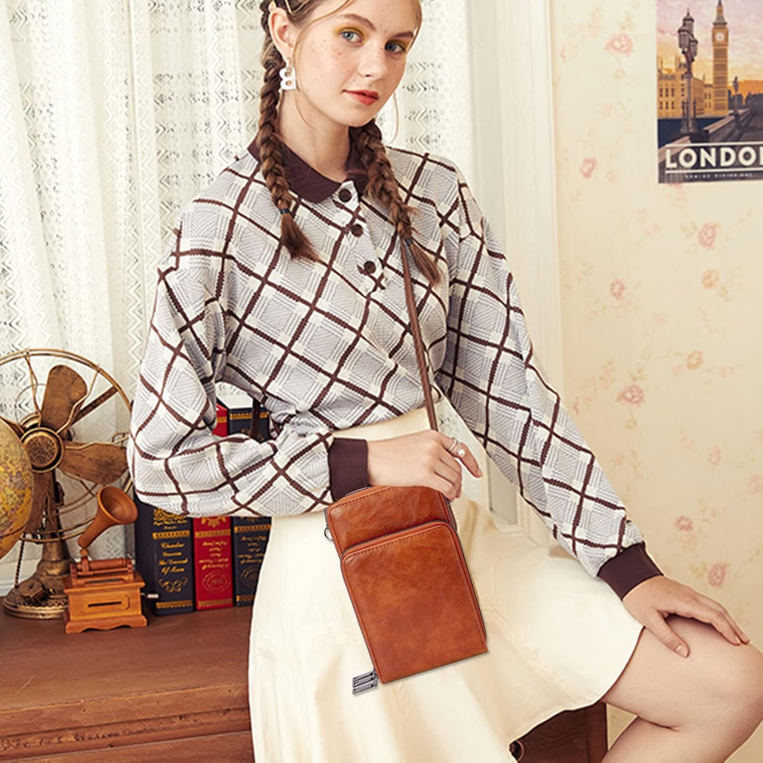 • 【Klassisches Design】 Die kleine Umhängetasche für Handy hat ein schönes und klassisches Aussehen, ausgestattet mit verstellbarem Schulterriemen. Passt zu jeder lässigen, Vintage- und stilvollen Kleidung, was auch immer Sie auf Reisen, Einkaufen,