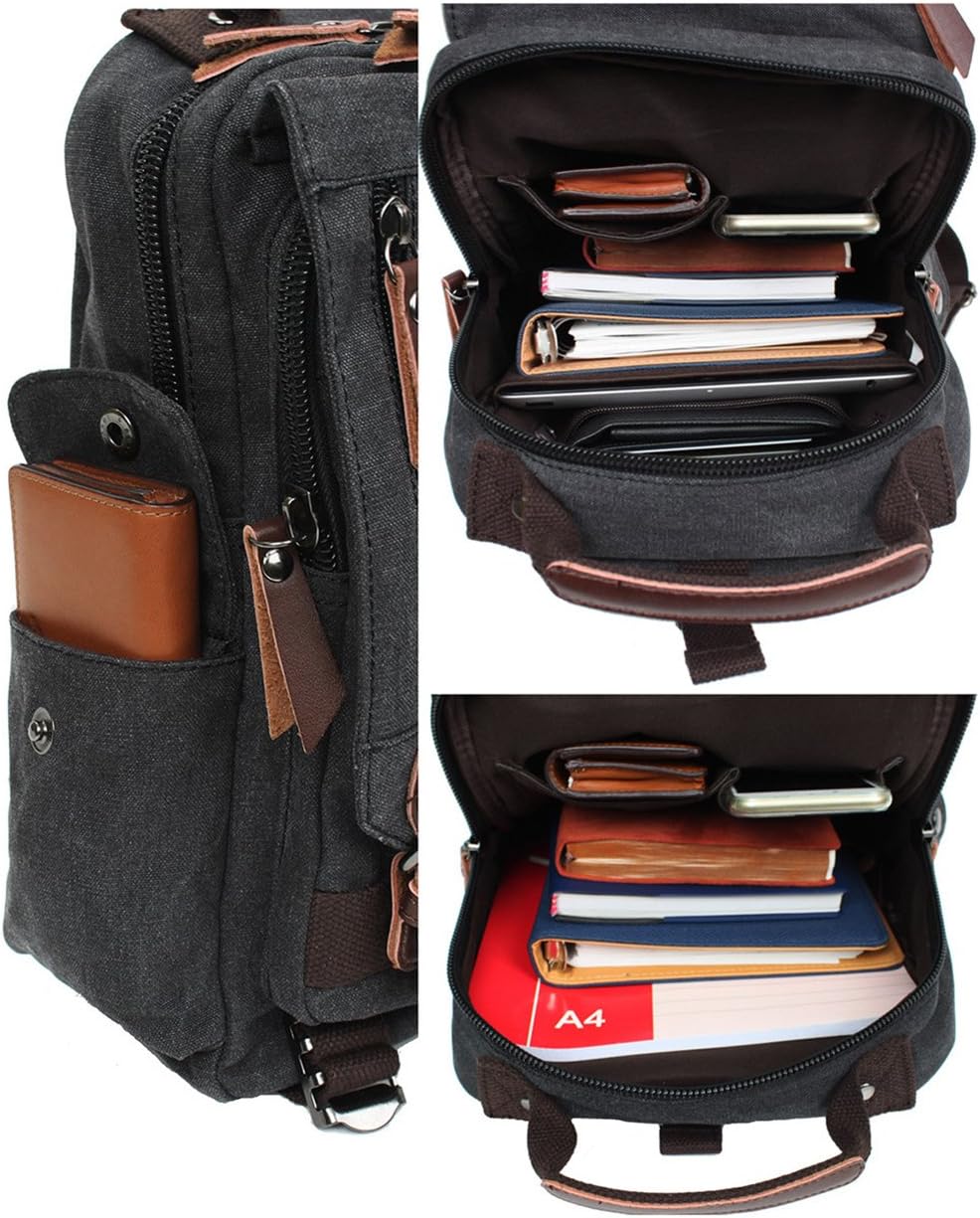 - 1.Material: weiche und langlebige gewaschene Canvas mit Lederverzierung. Die Aussenseite der Messanger Umhängetasche ist aus einem langlebigen Canavs Material und das innere Hauptfach ist aus einem weichen Luxusmaterial hergestellt.