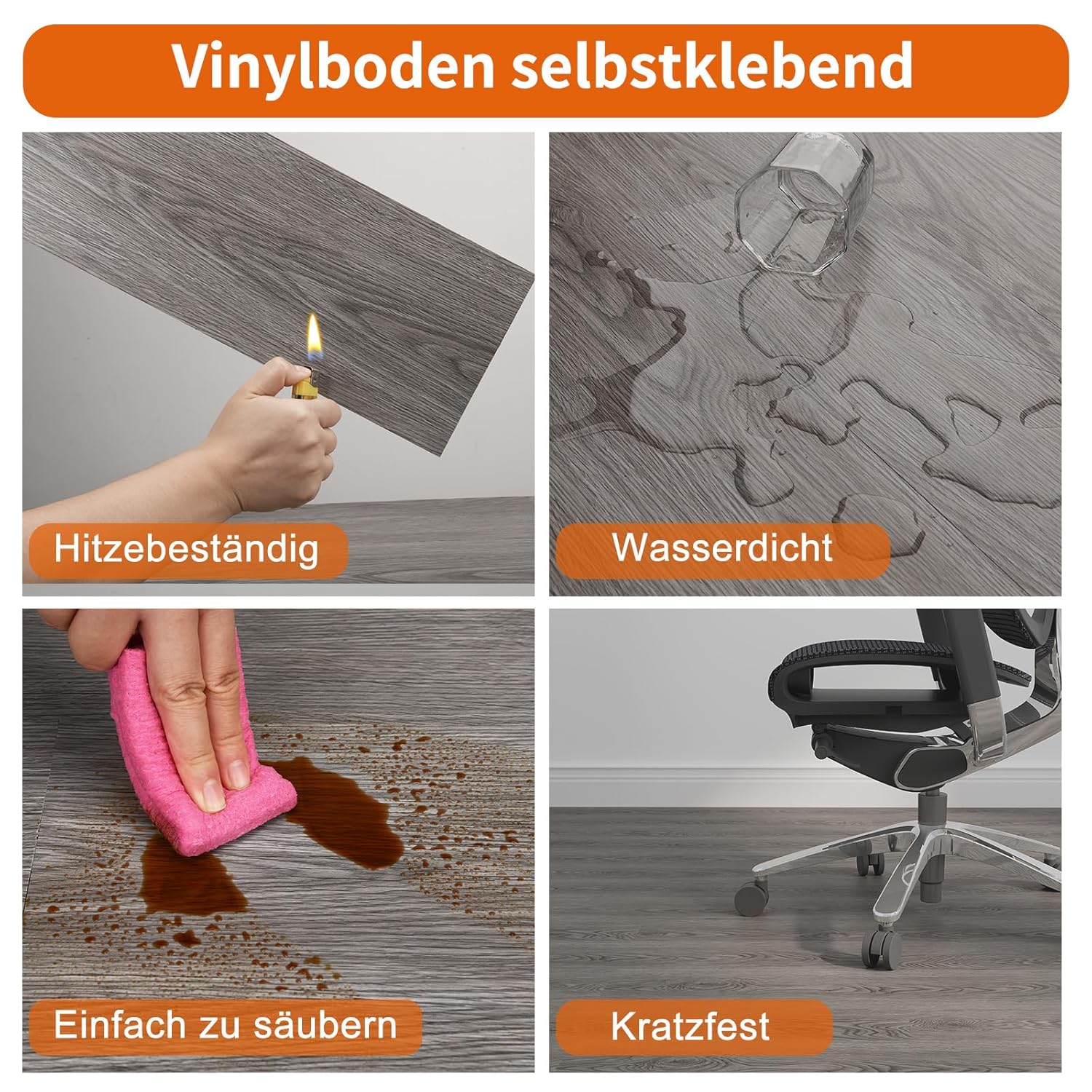 - Kratzfest: Mysflosy Selbstklebende Planken mit einer Nutzschicht oben, die die Kratz- und Abriebfestigkeit erheblich verbessern kann. Leicht zu reinigen und wasserdicht
