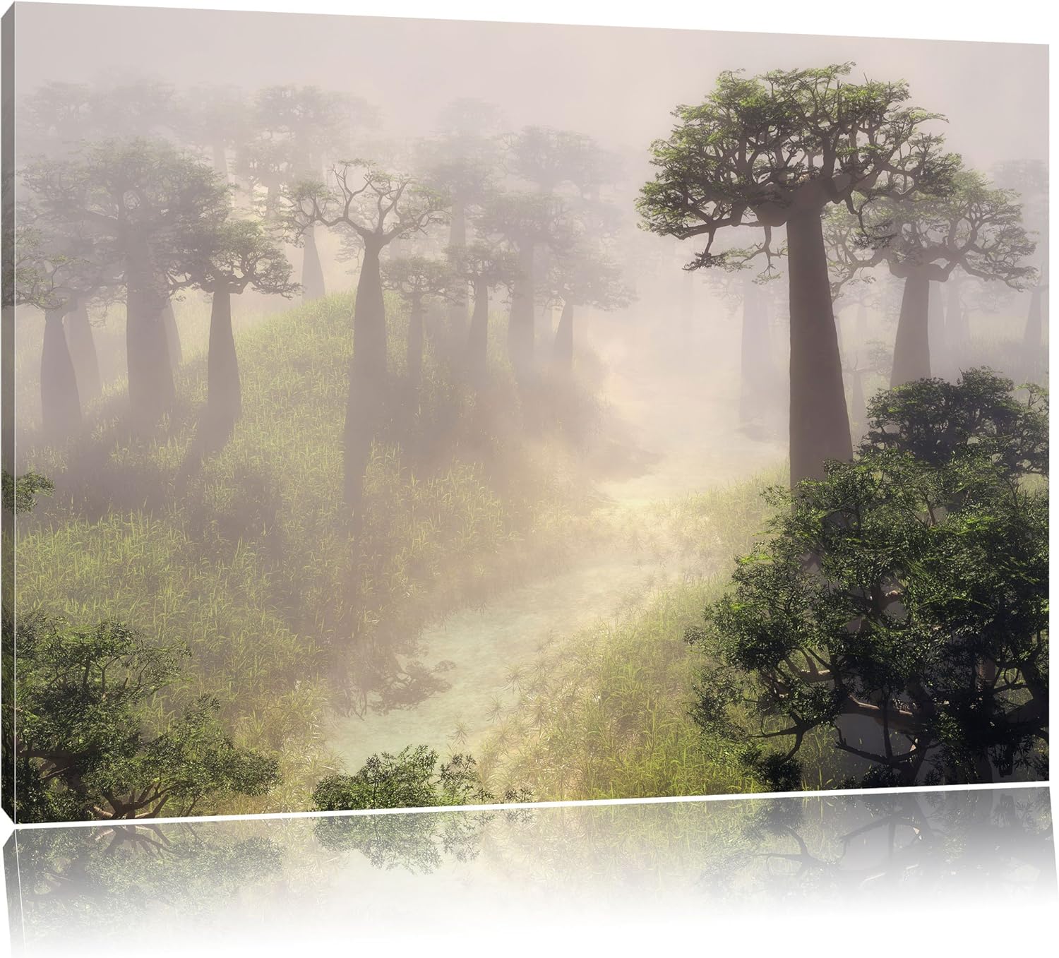 Mysteriöser Wald im Nebel, Format: 100x70 auf Leinwand, XXL riesige Bilder fertig gerahmt mit Keilra