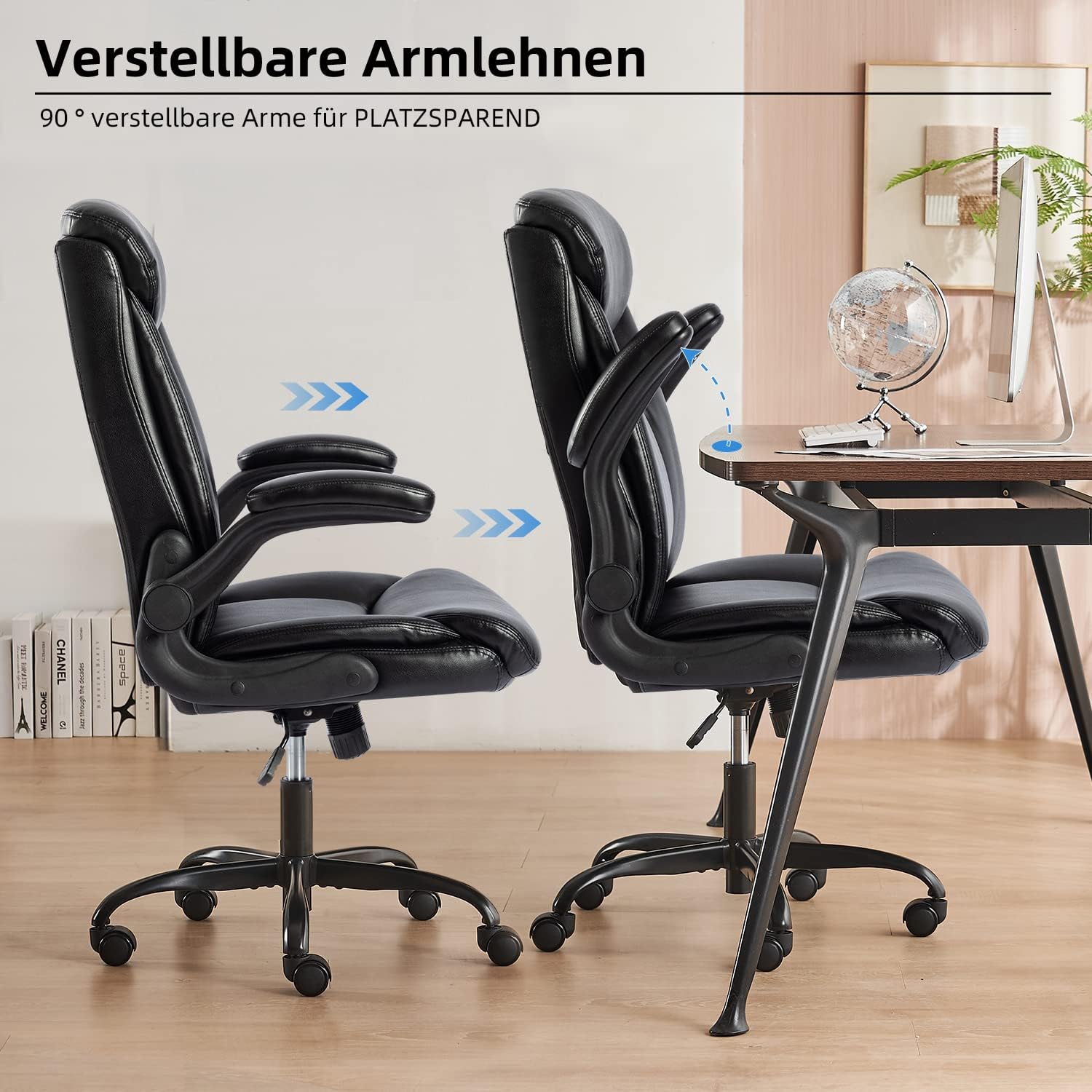 - 【Mehrfacheinstellung】 Dieser 360°-Drehstuhl verfügt über einen 3,9-Zoll-Höhenversteller, der sich leicht an Ihre Körpergrösse und -form anpassen lässt. Die Neigungsfunktion mit Positionssperre und 110°-Rückenverstellung SICHER und KOMFORT. Die um 90 ° hochklappbaren, gepolsterten Armlehnen sparen Platz und eignen sich für Wohnzimmer, Arbeitszimmer, Konferenzraum und Büro.