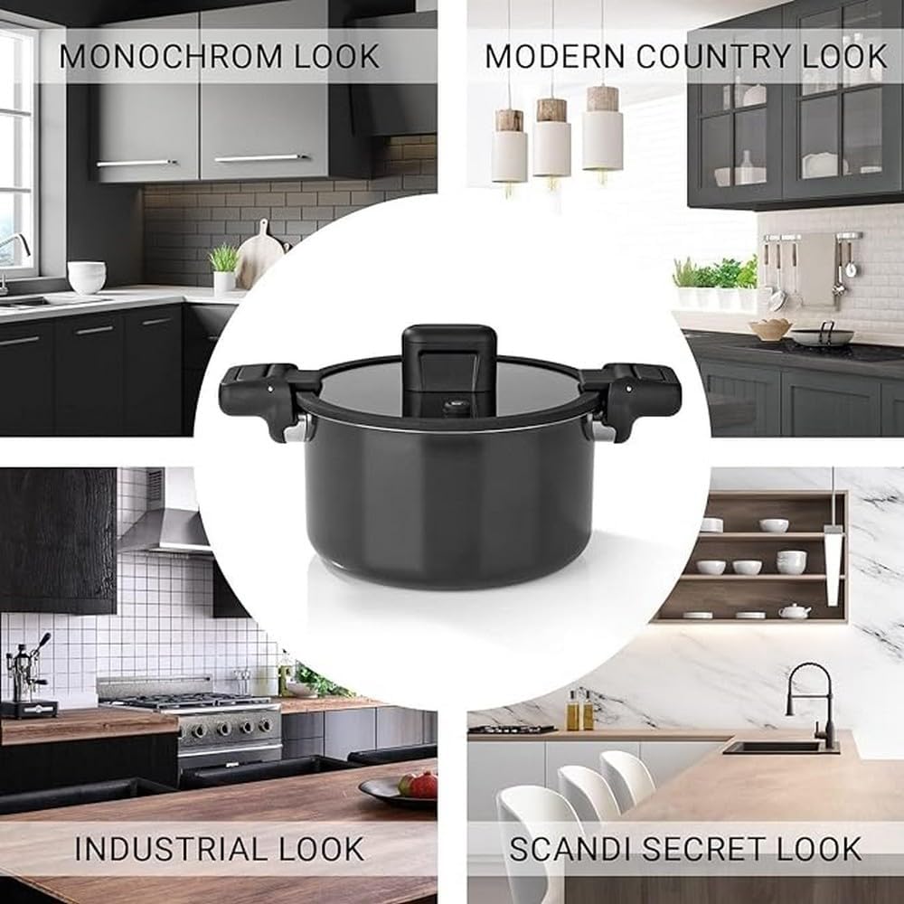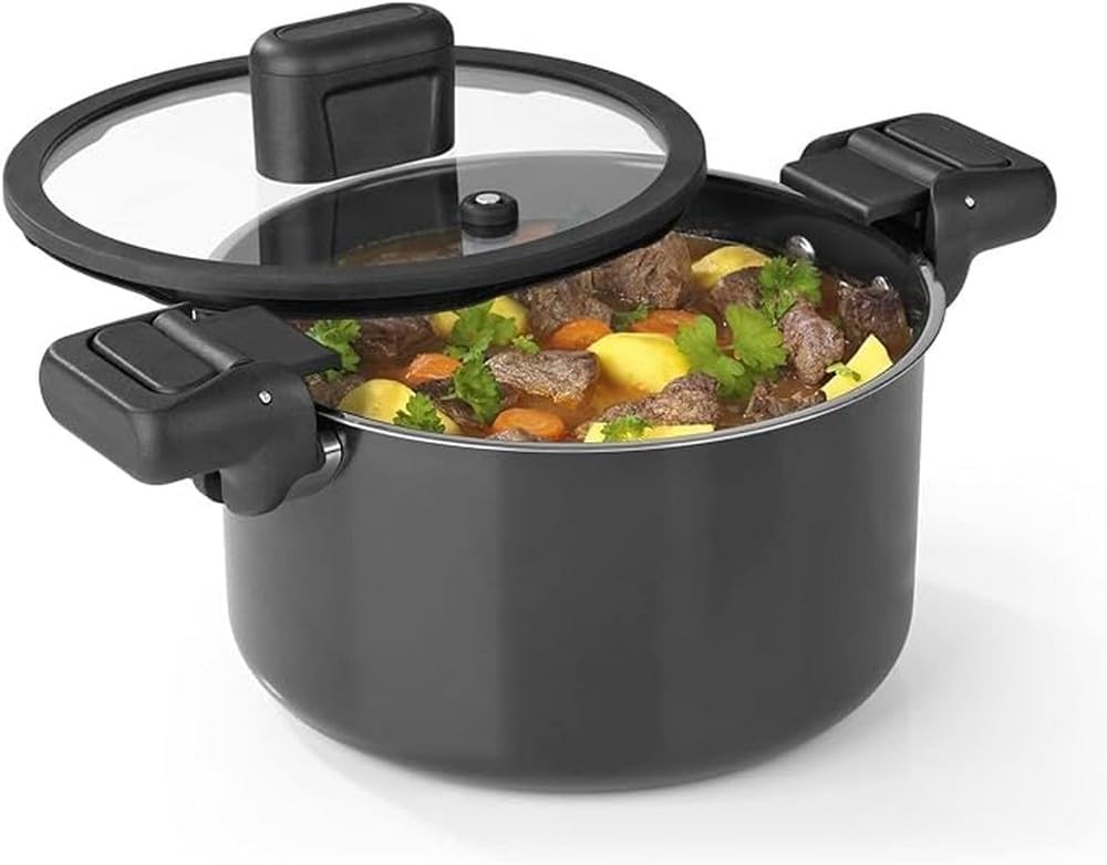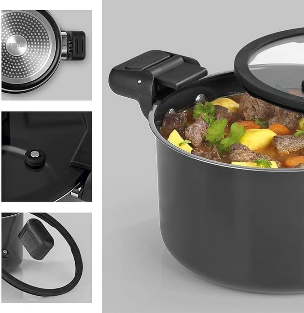 - Gesünderes Kochen: Durch die verkürzte Garzeit bereitest du deine Speisen mit diesem beschichteten Topf gesünder und vitaminschonender zu, mit weniger Fettzugabe dank Antihaftbeschichtung