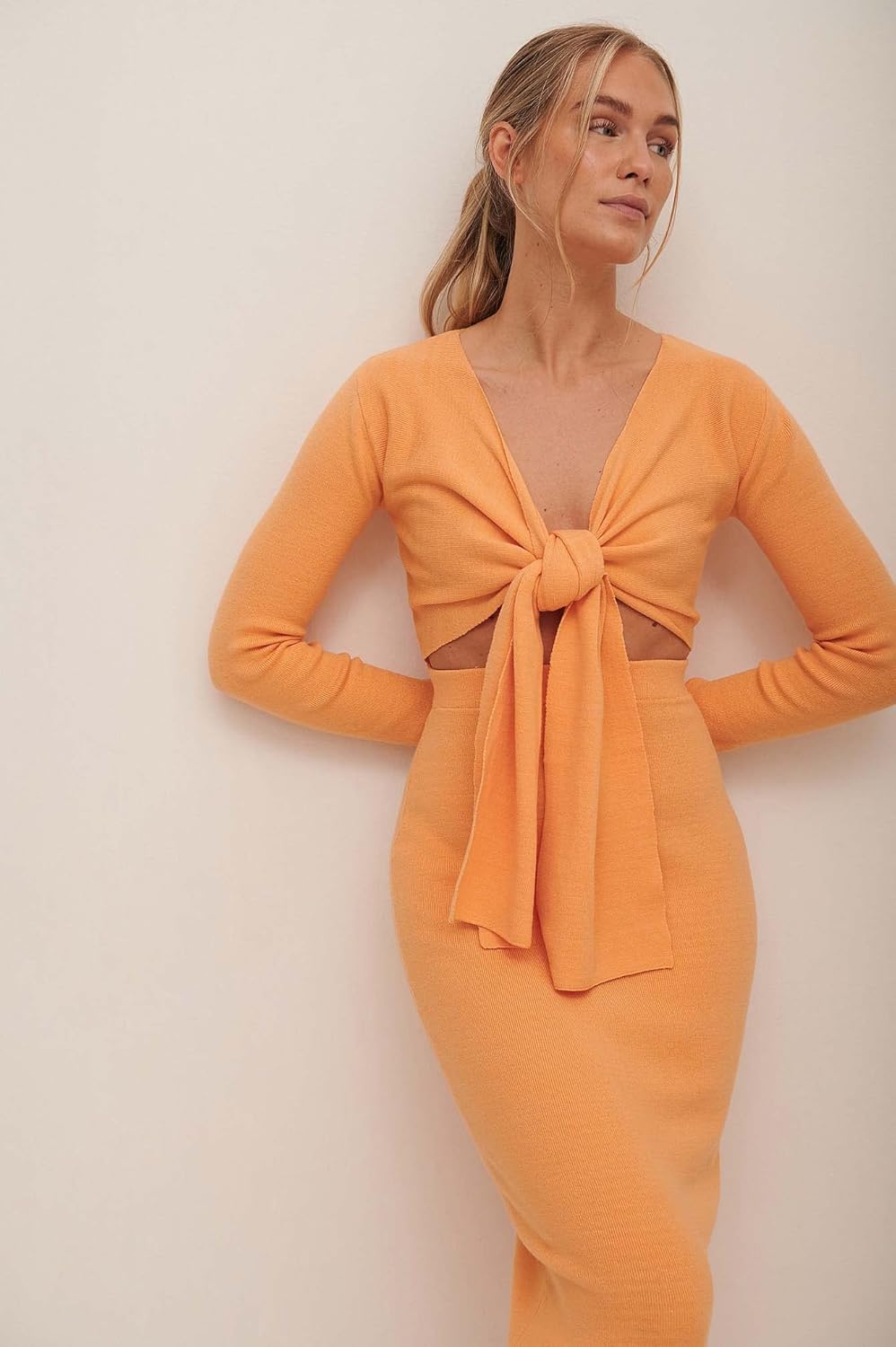 NA-KD Damen Gestricktes Midikleid mit Knoten Vorne Lssiges Kleid, Pfirsich