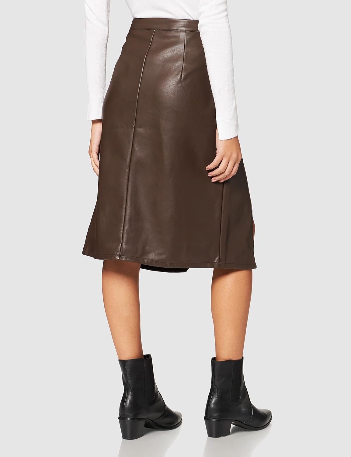 NA-KD Damen Pu Front Slit Skirt Rock 40 Dark Brown, 40 Dark Brown