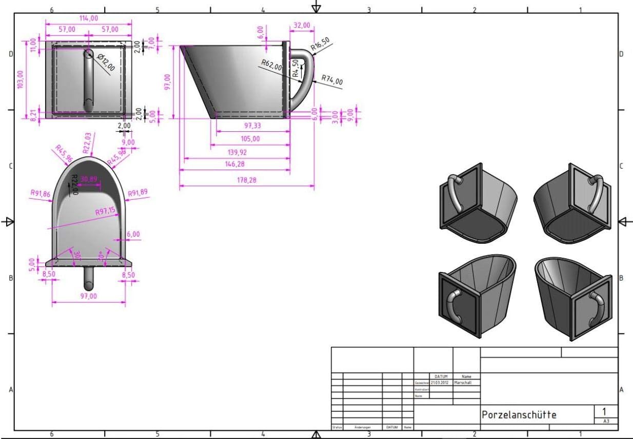 - Schütte aus weisser Keramik, H: 106 mm, B: 116 mm, T: 145 mm. Gewicht: ca. 500 g, Fassungsvermögen: 0,75 l.
