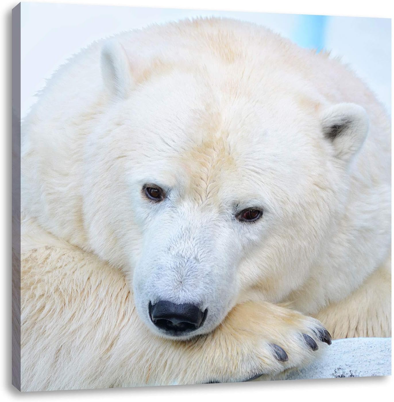 Nachdenklicher Eisbär, Format: 70x70 auf Leinwand, XXL riesige Bilder fertig gerahmt mit Keilrahmen,