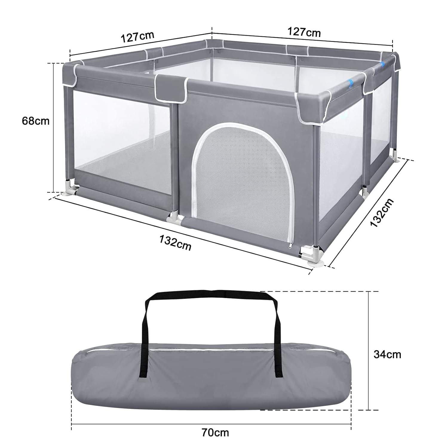 - 【Baby Laufstall】Es hat ein Geräumiger Platz. Nach korrekter Installation gemäss der Anleitung beträgt die Gesamtgrösse des Artikels ca. 127 x 127 x 68 cm [L x B x H]. Es gibt genug Platz für Ihr Baby, um so viel zu spielen, wie Sie möchten, und auch Eltern können das Baby betreten und begleiten.