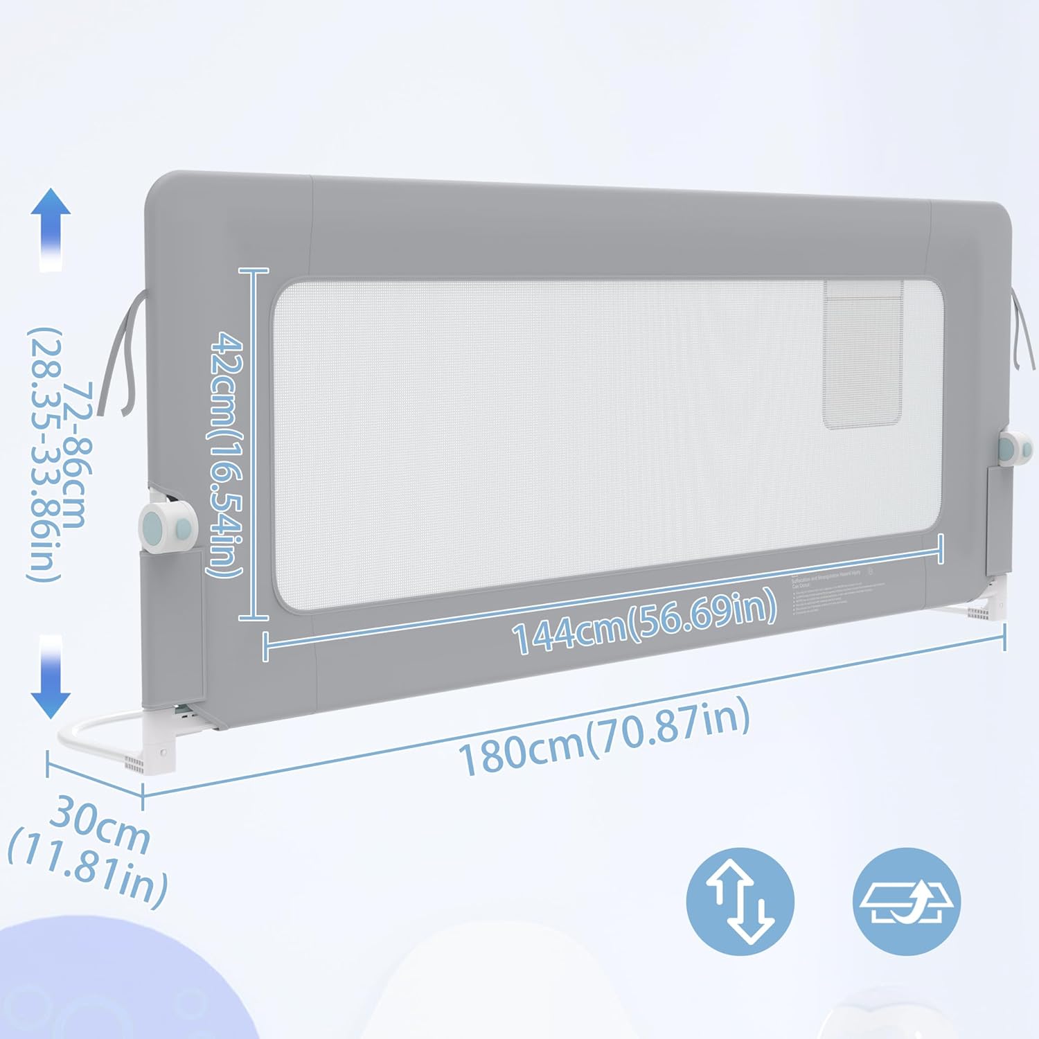 - Vertikal Anhebbar - Die Höhe der neuen Bettgitter kann je nach Dicke der Matratze frei eingestellt werden, die einstellbare Höhe beträgt 72-86 cm. Vertikales Heben, leichtes Auf- und Absteigen vom Bett