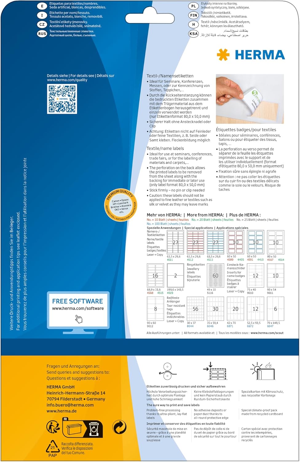 - Lieferumfang: 17280 x HERMA Namensetiketten, DIN A4 Format, 6,35 x 2,96 cm, rechteckig, weiss (640 Blatt je 27 Etiketten)
