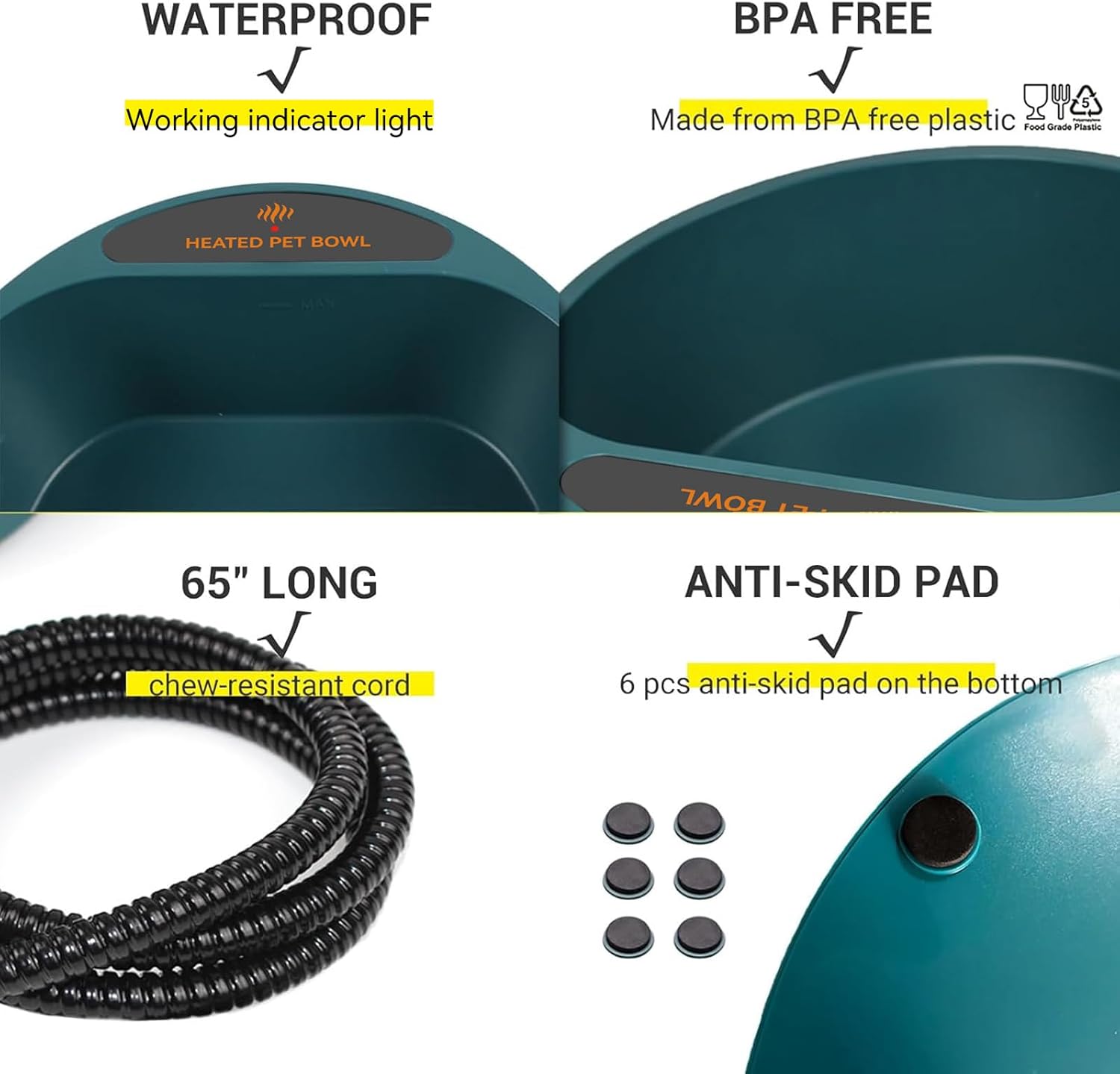 - Der Wassernapf ermöglicht es das Wasser zwischen 28-35 Grad zu temperieren und zu halten, Automatische Abschaltung und Überhitzungsschütz.