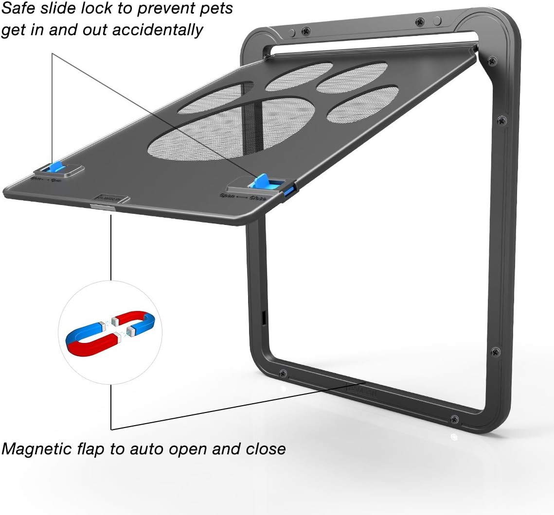 - Einfache Installation: Geeignet für jede abgeschirmte Tür und jedes abgeschirmte Fenster. Installieren Sie die Tür je nach Höhe des Haustieres an einer geeigneten Position und befestigen Sie sie mit Schrauben. Anweisungen sind im Paket enthalten,