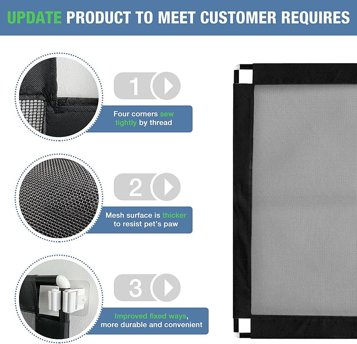 - Überall Installieren: Haustierschutzgitter können verwendet werden, um Flure, Küchen, Schlafzimmer, Treppen zu trennen; Sie können verhindern, dass Hunde Möbel, Sofas beschädigen oder sich schlecht benehmen. Obwohl ein Sicherheitsgitter für Haustiere installiert ist, können Sie die Aktivitäten von Haustieren durch das Nylonnetz klar überwachen.