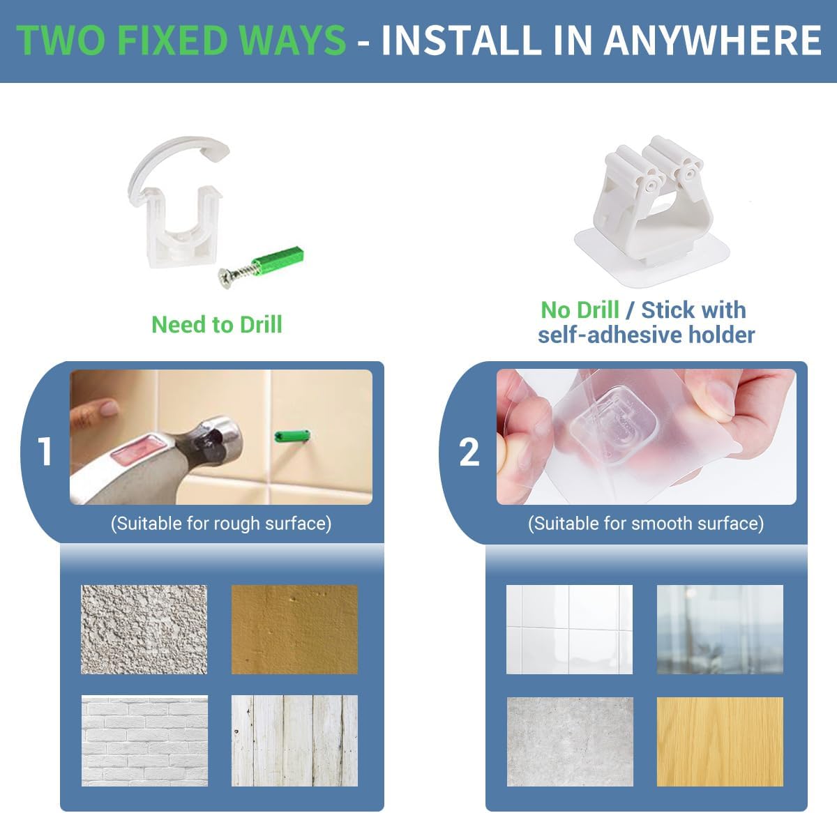 - Das Produkt wird mehrmals verbessert: 1. Das Kunststoffrohr wird in ein hohles Eisenrohr verbessert, das haltbarer ist. 2. Das Paket enthält zwei Befestigungsmethoden. Sie können wählen, ob Sie die Wand lochen oder bekleben. 3. Die Oberfläche von Nylon ist dicker und kann dem Kratzen von Haustierklauen widerstehen.